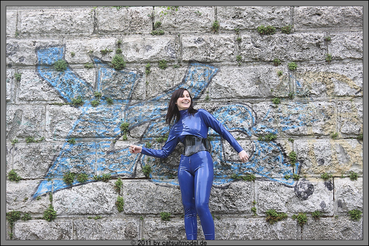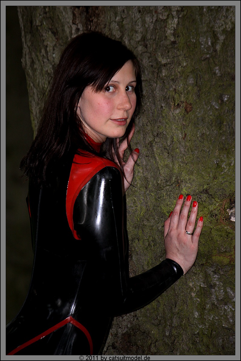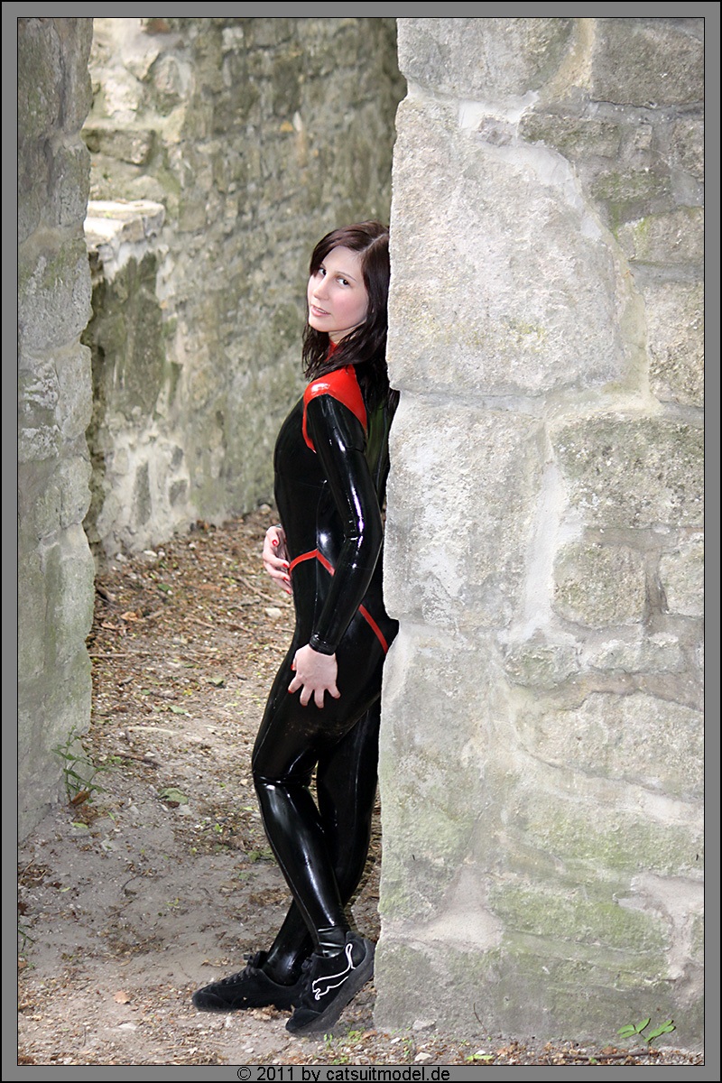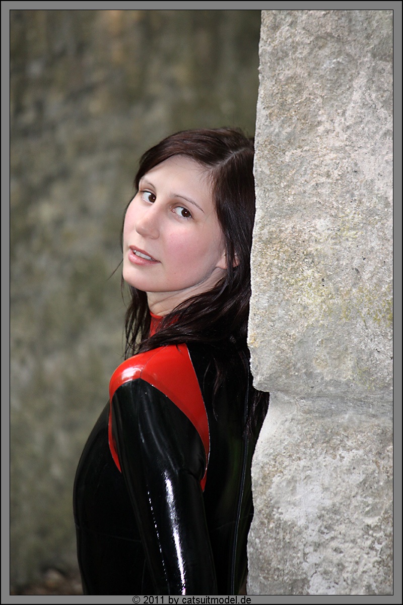 Was mir auch gut an ihr gefällt,sie ist kein Hungerhacken.Sondern hat schöne weibliche Kurven,die so ein Latexanzug auch noch schön betont.