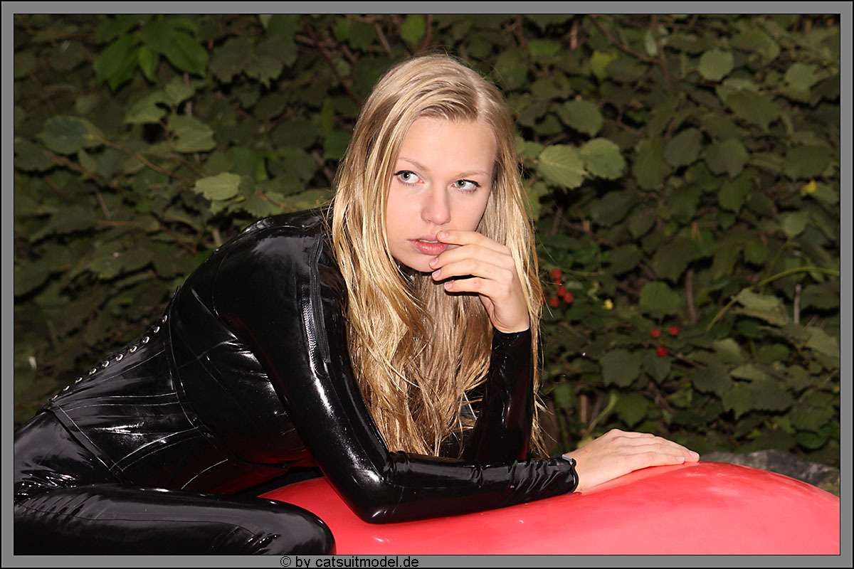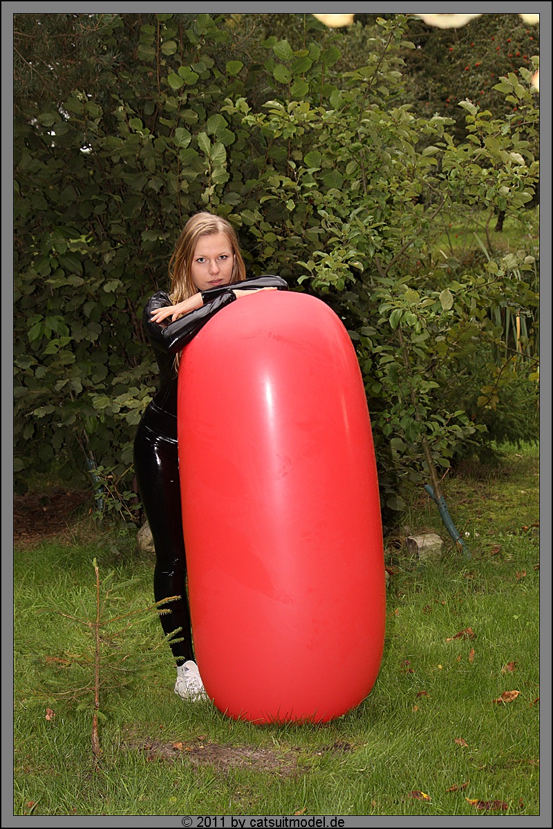 Der erste Versuch, auch stachliger Wiese neben einer spitzen Fichte ein Model auf einem Ballon zu platzieren. Der Ballon hielt durch und irgendwann entspannte auch mein Model.