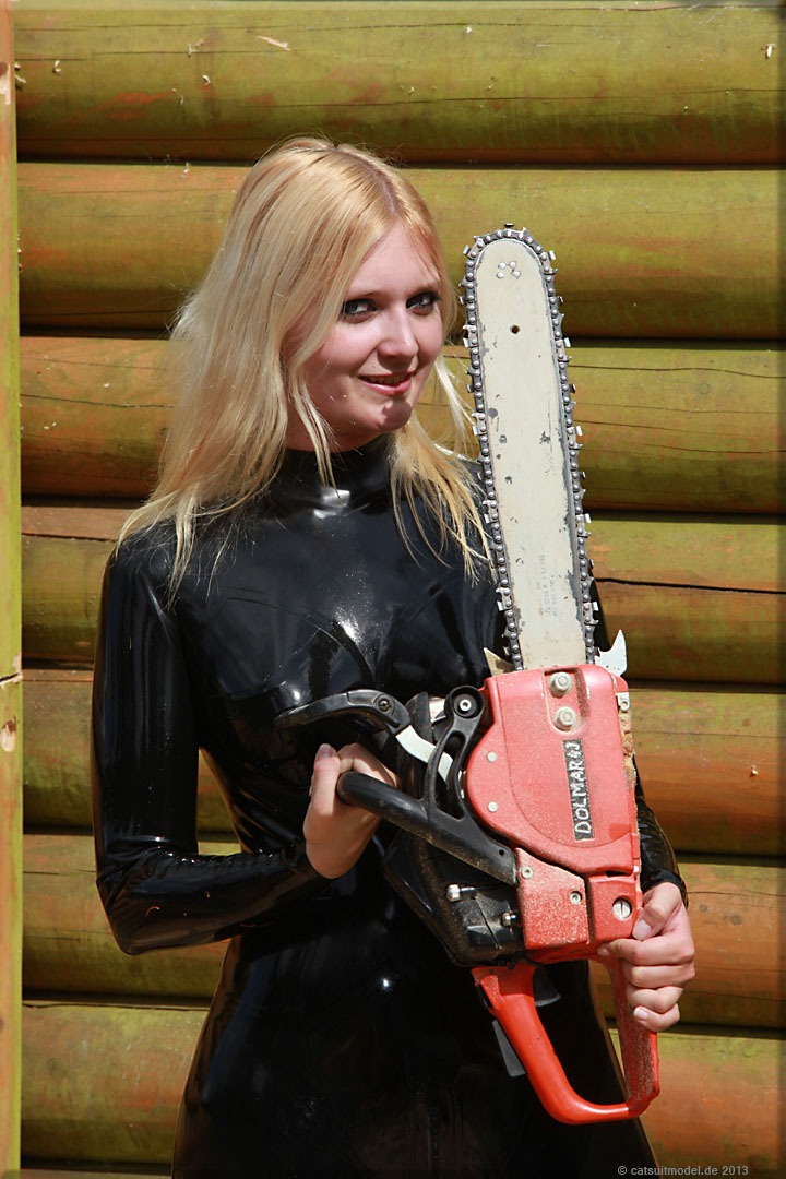 Kimba kommt aus Finnland und hat mich ausser mit ihrer fehlenden Wasser- und Kältescheu mit guter Kenntnis von Waffen und Ballett überrascht. Outdoorshooting Juni 2013 an der Okertalsperre im Harz. Die Kettensäge haben wir zwei völlig perplexen Waldarbeitern abgeschwatzt.