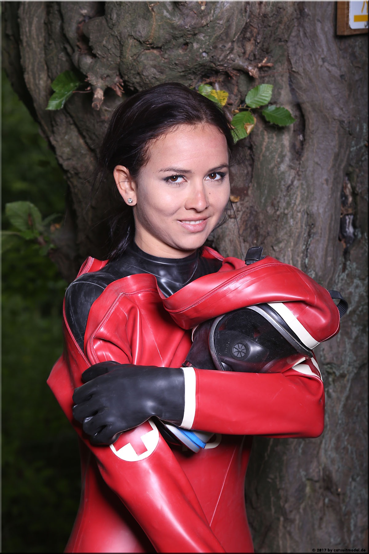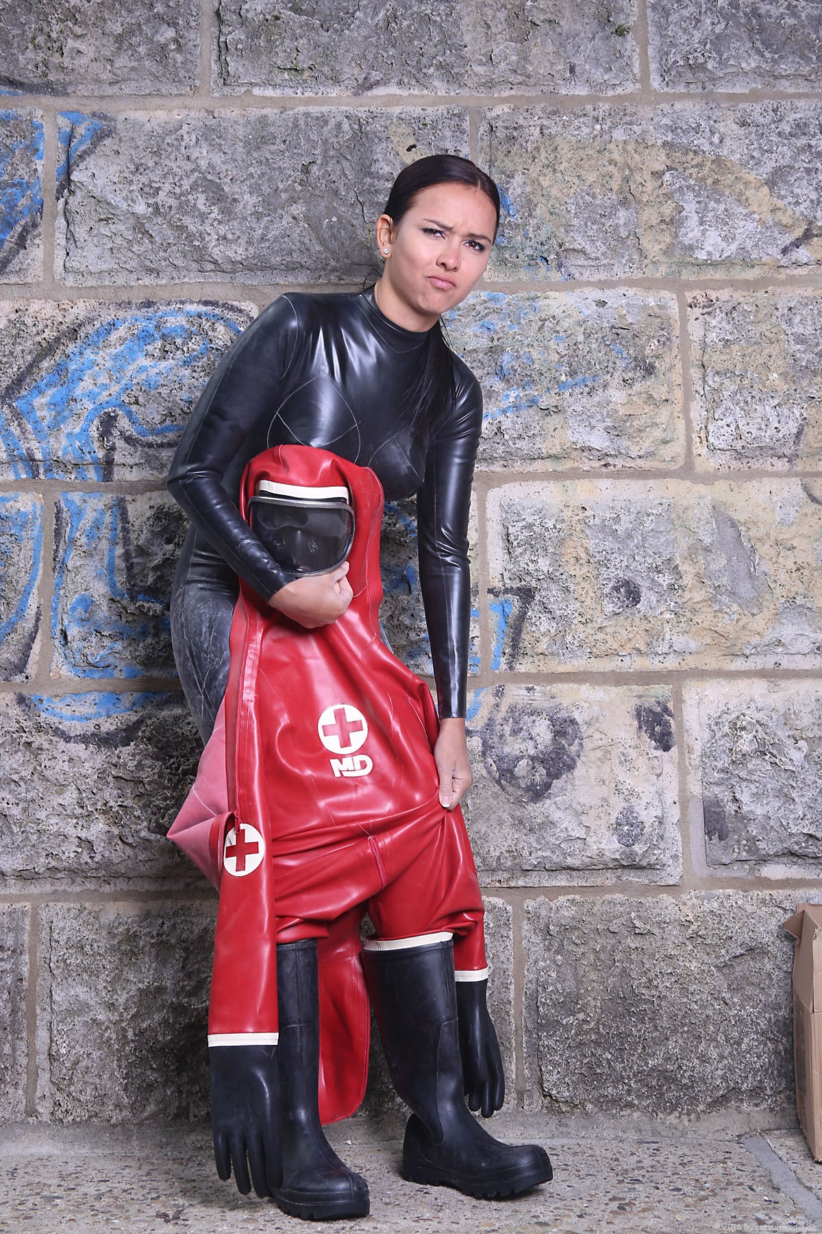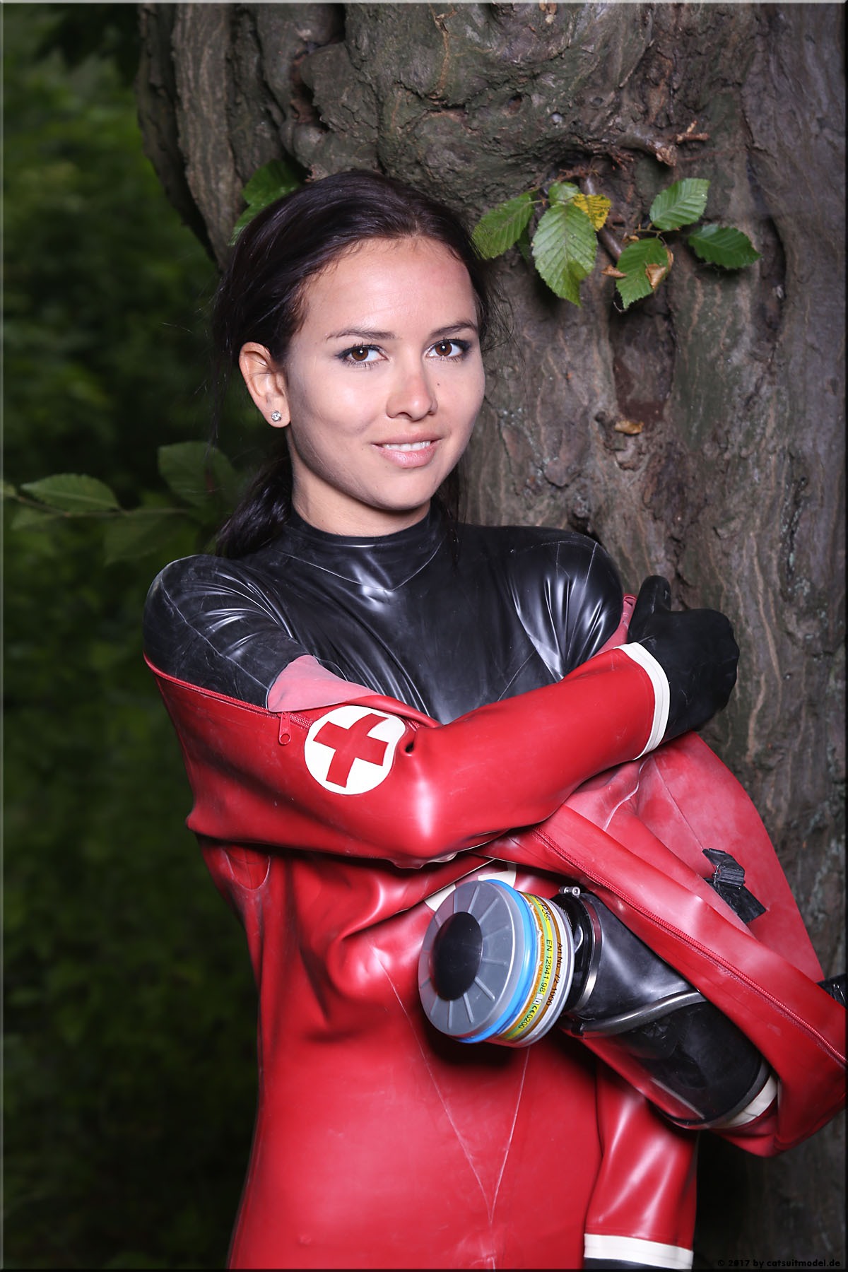 Katya war die erste, die meinen neuen Rotkreuzanzug testen durfte.