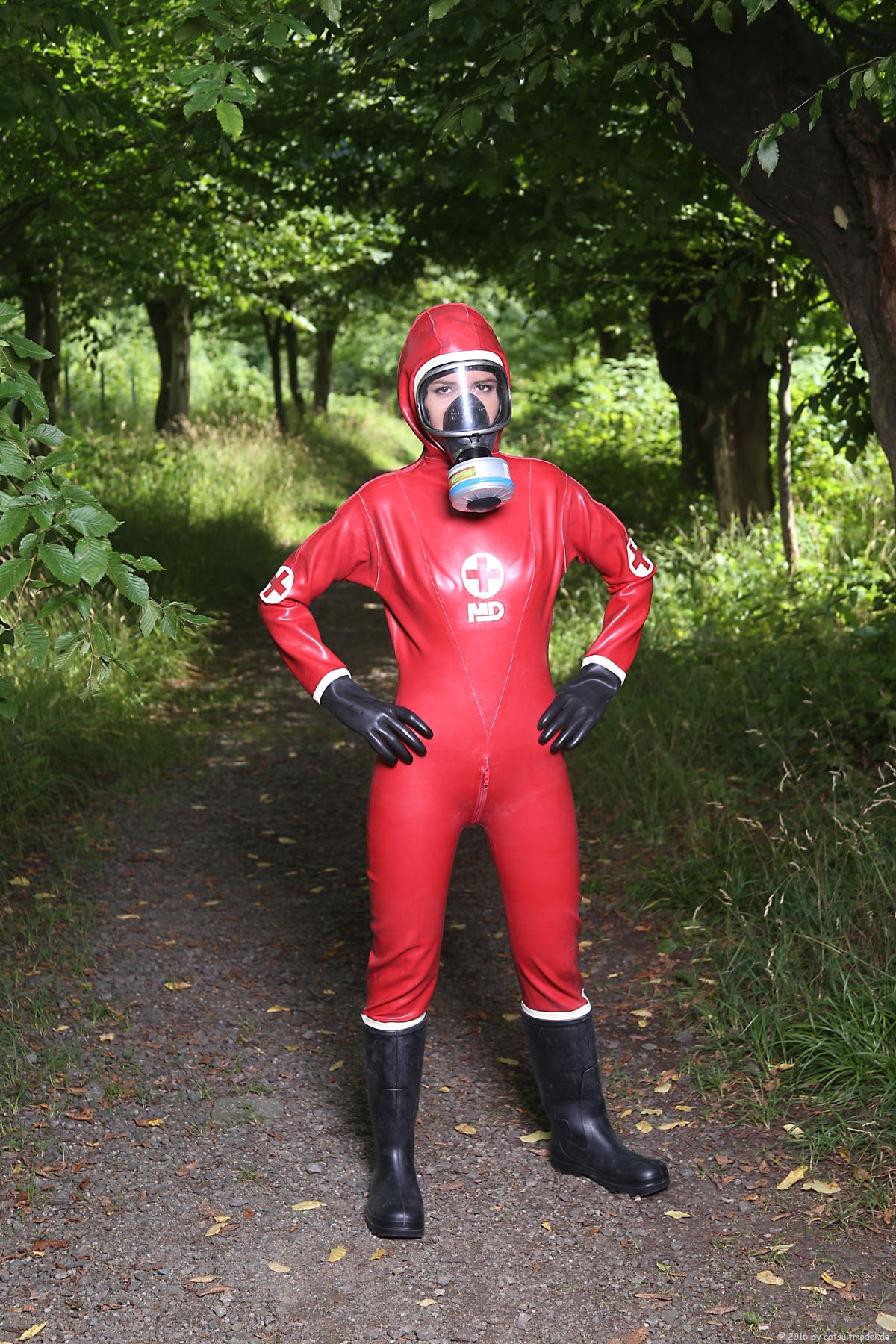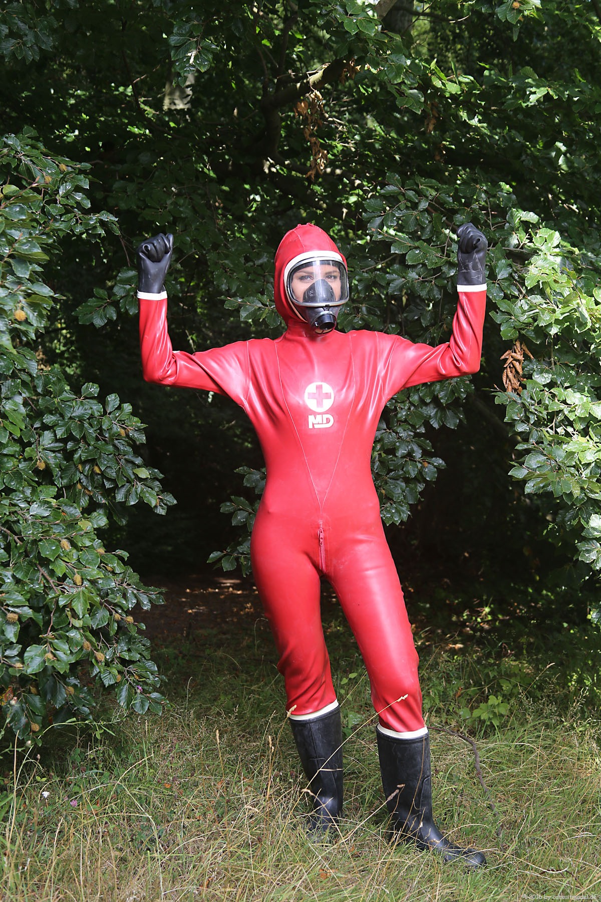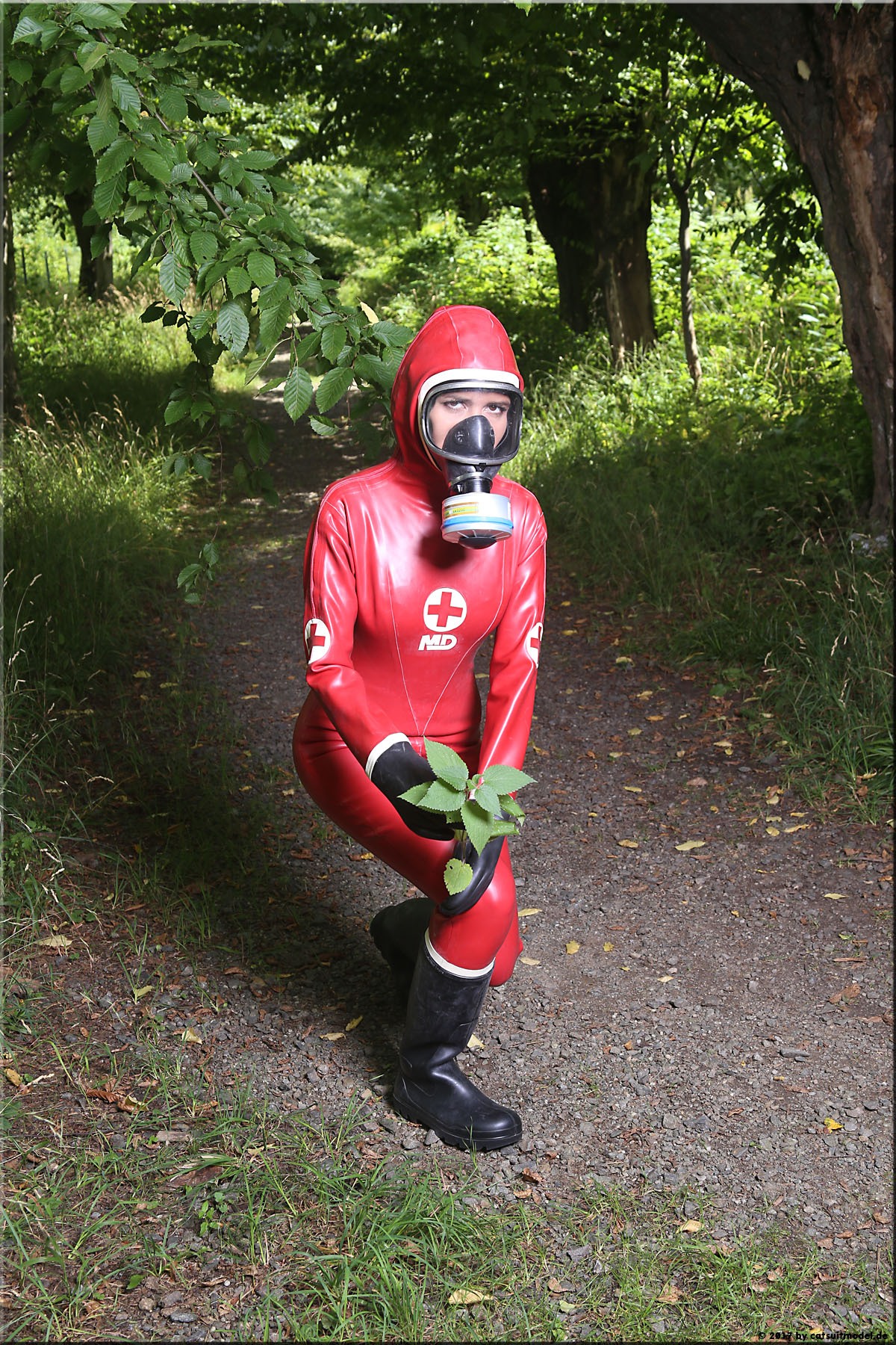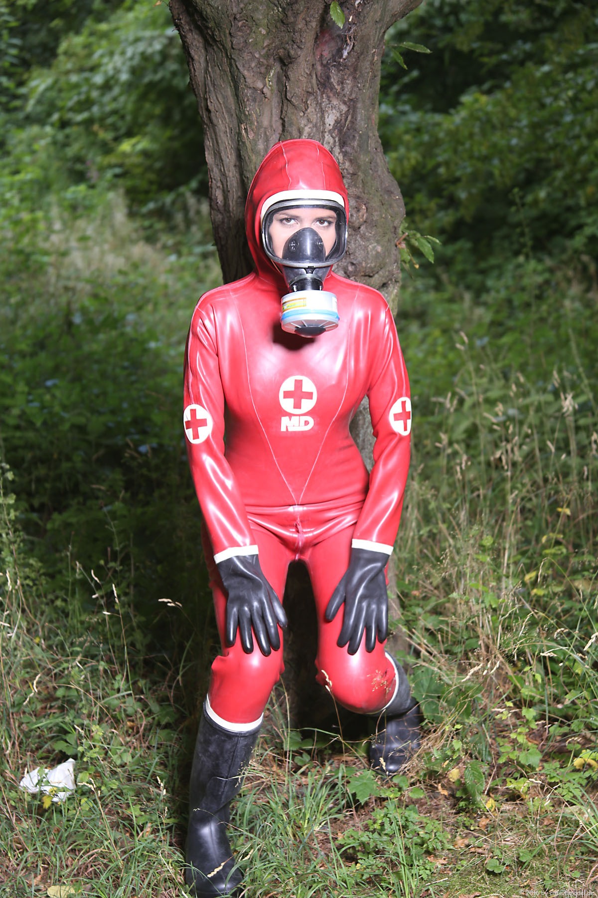 Katya war die erste, die meinen neuen Rotkreuzanzug testen durfte.