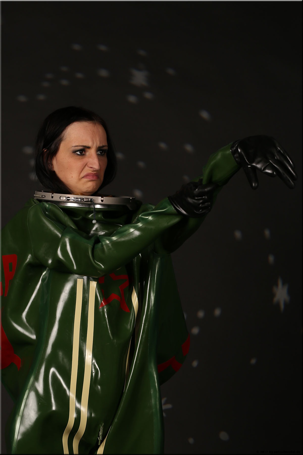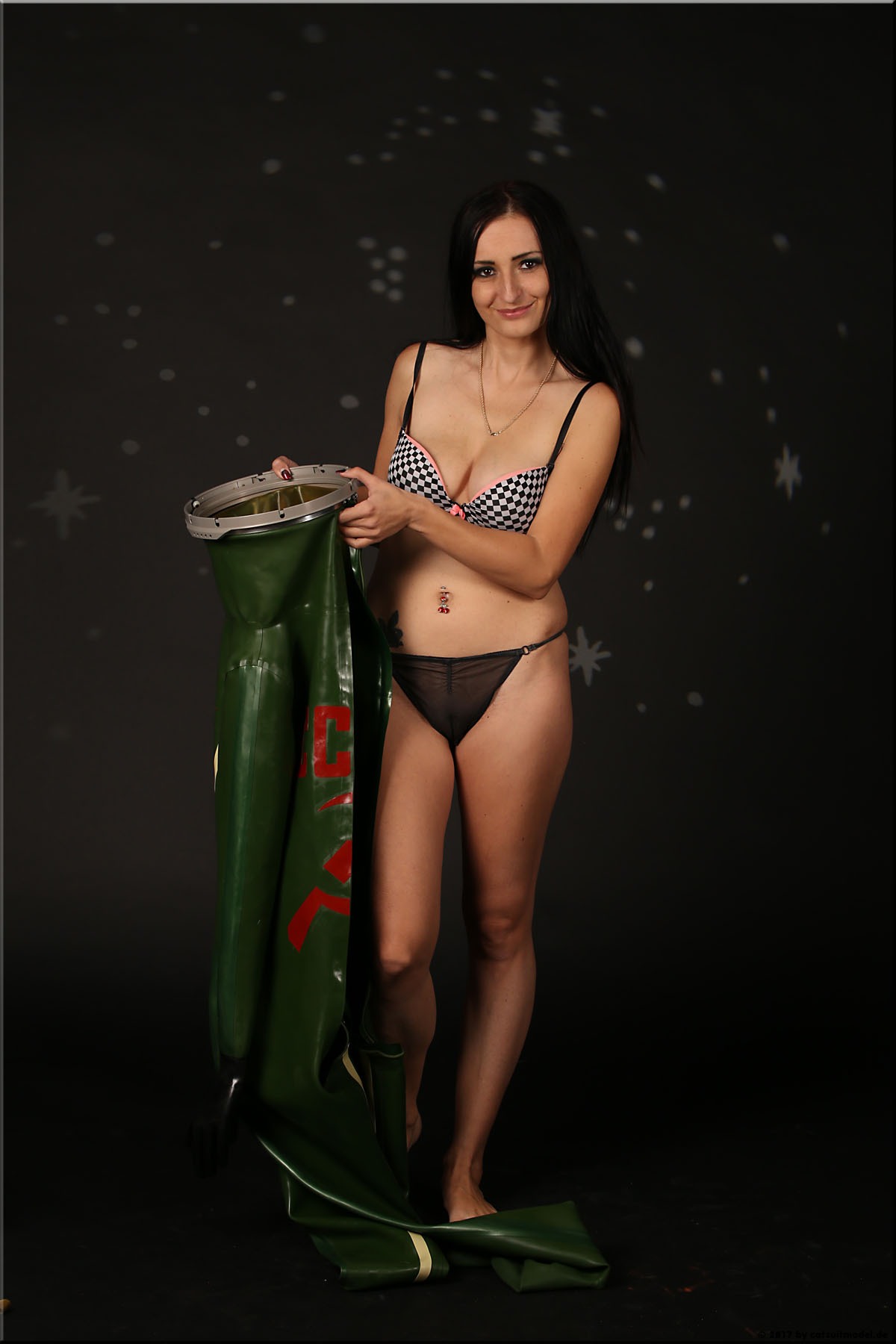 Mir kommt es auf den Bildern so vor, als wenn sich ein Model endlich mal so richtig wohl fühlt in dem Anzug. Die Bilder strahlen keinen Hauch von Unbehagen aus. Solte ihr der Anzug trotzdem nicht gefallen haben, so hat sie das sehr professionell überspielt.