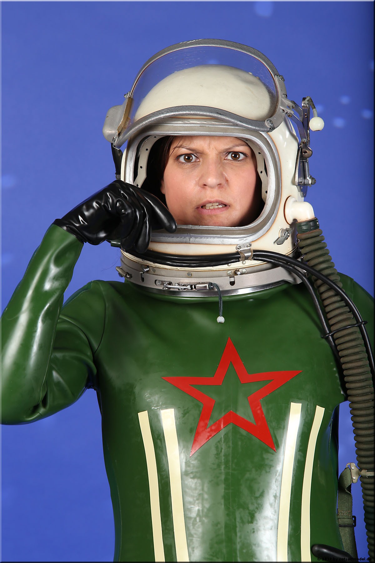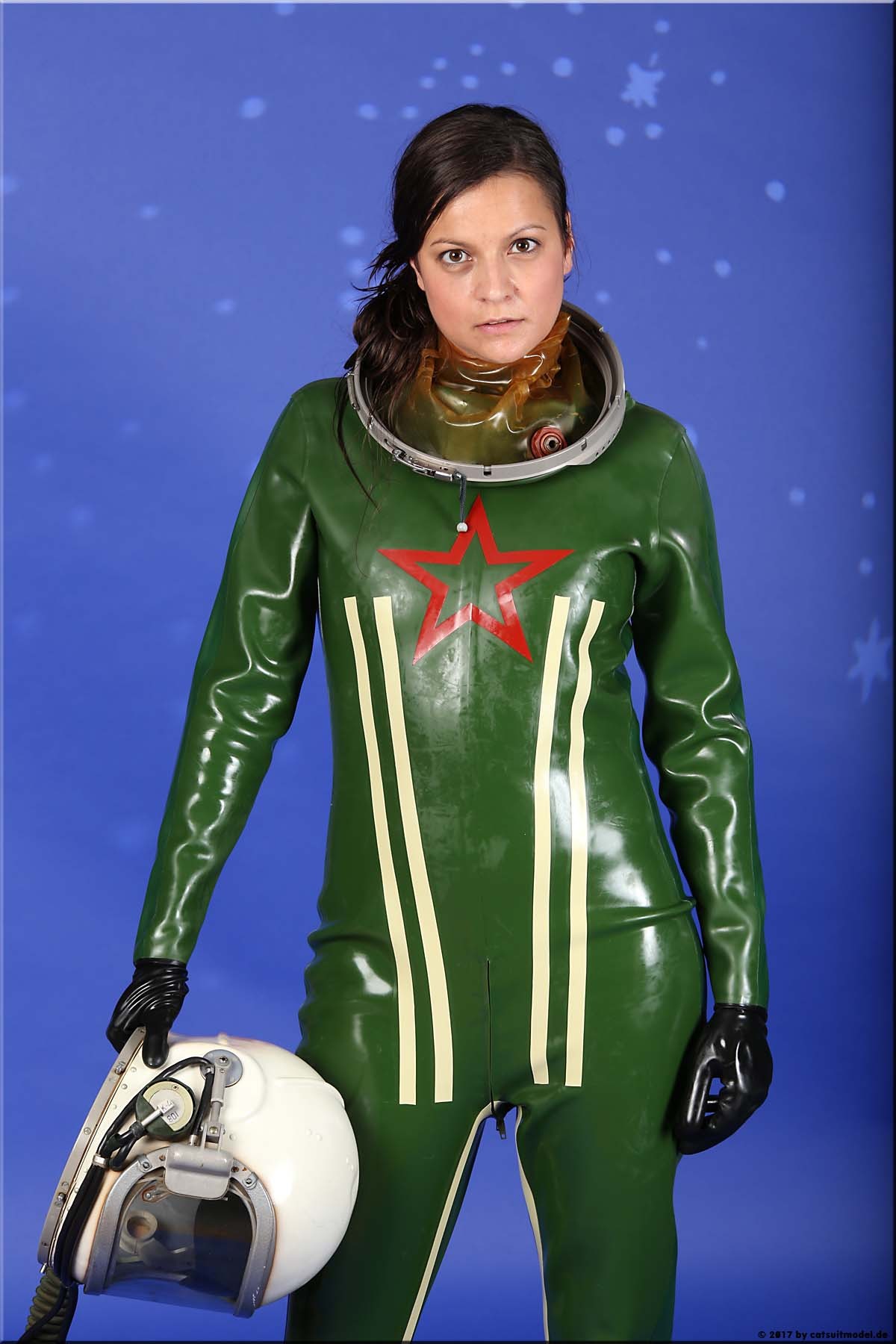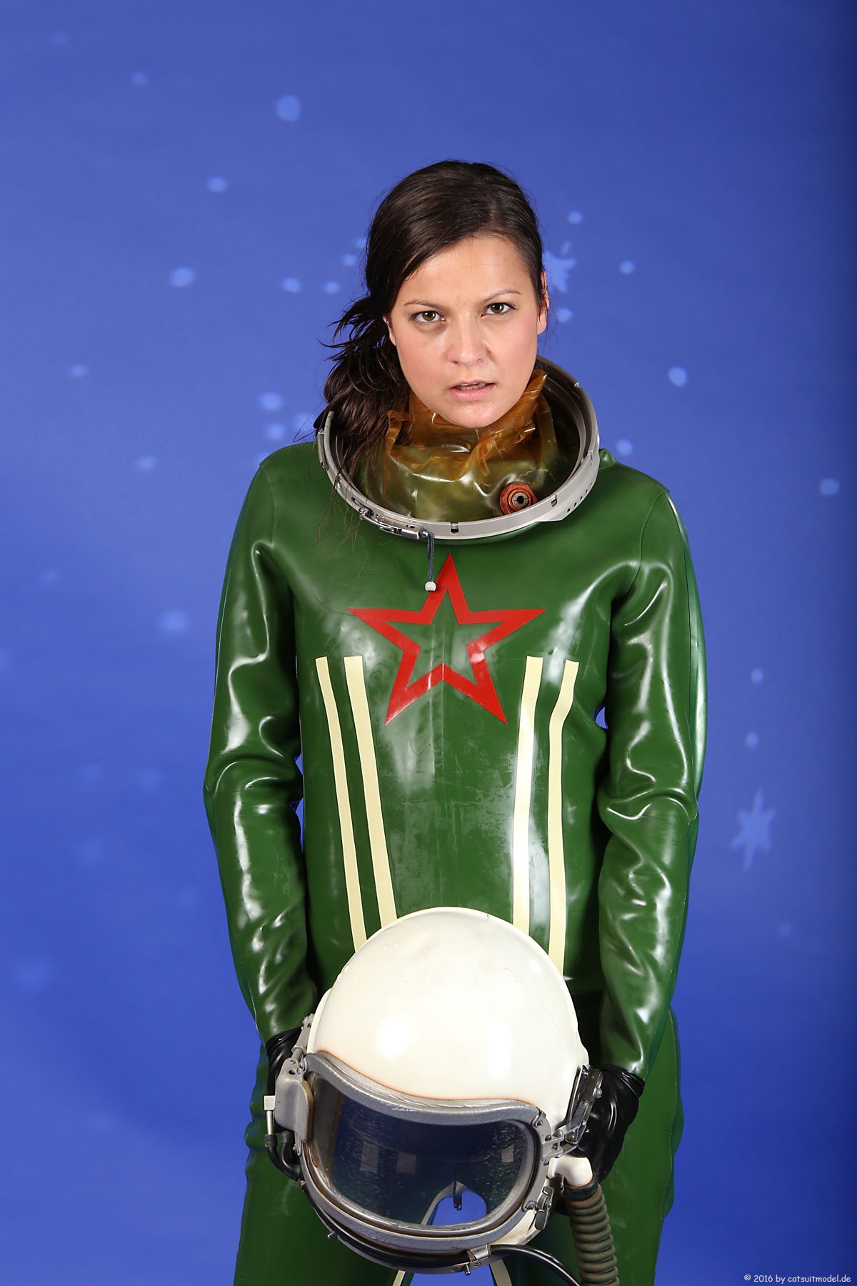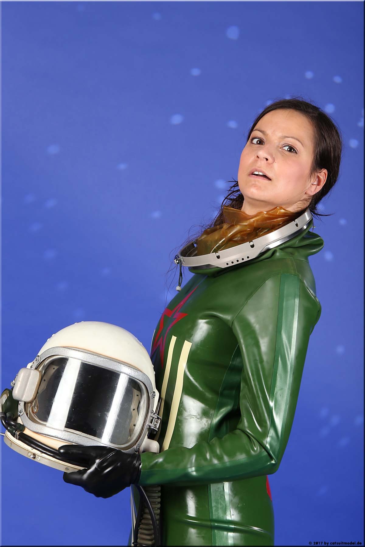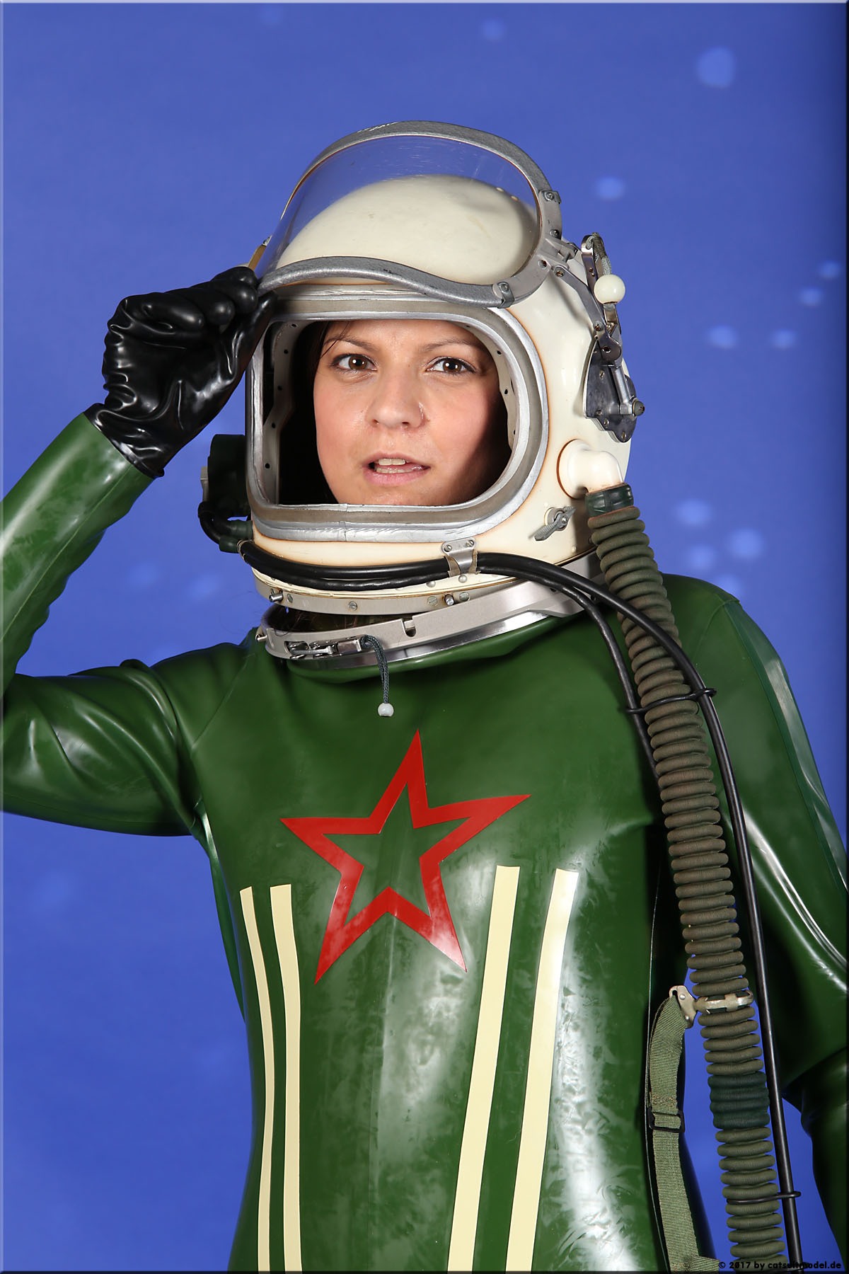 21 Feb. 2017Nun ja, die meisten Models passen nicht in den Jetfighter, weil der ganze Helm etwas surreal ist und damit schon das Objekt unglaubhaft. Aber die Serien leben einerseits von dem Posing und dem Stolz der Models, sich da reingetraut zu haben und andererseits von dem Gegensatz zwischen 10 kg schwerem Latex und den zarten Frauen. Ich find auch – jede muß mal rein und das teil muß dringend wieder outdoor in irgendwelche abgefahrenen Industrieruinen.