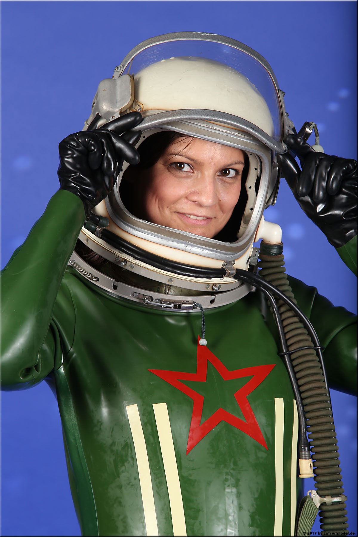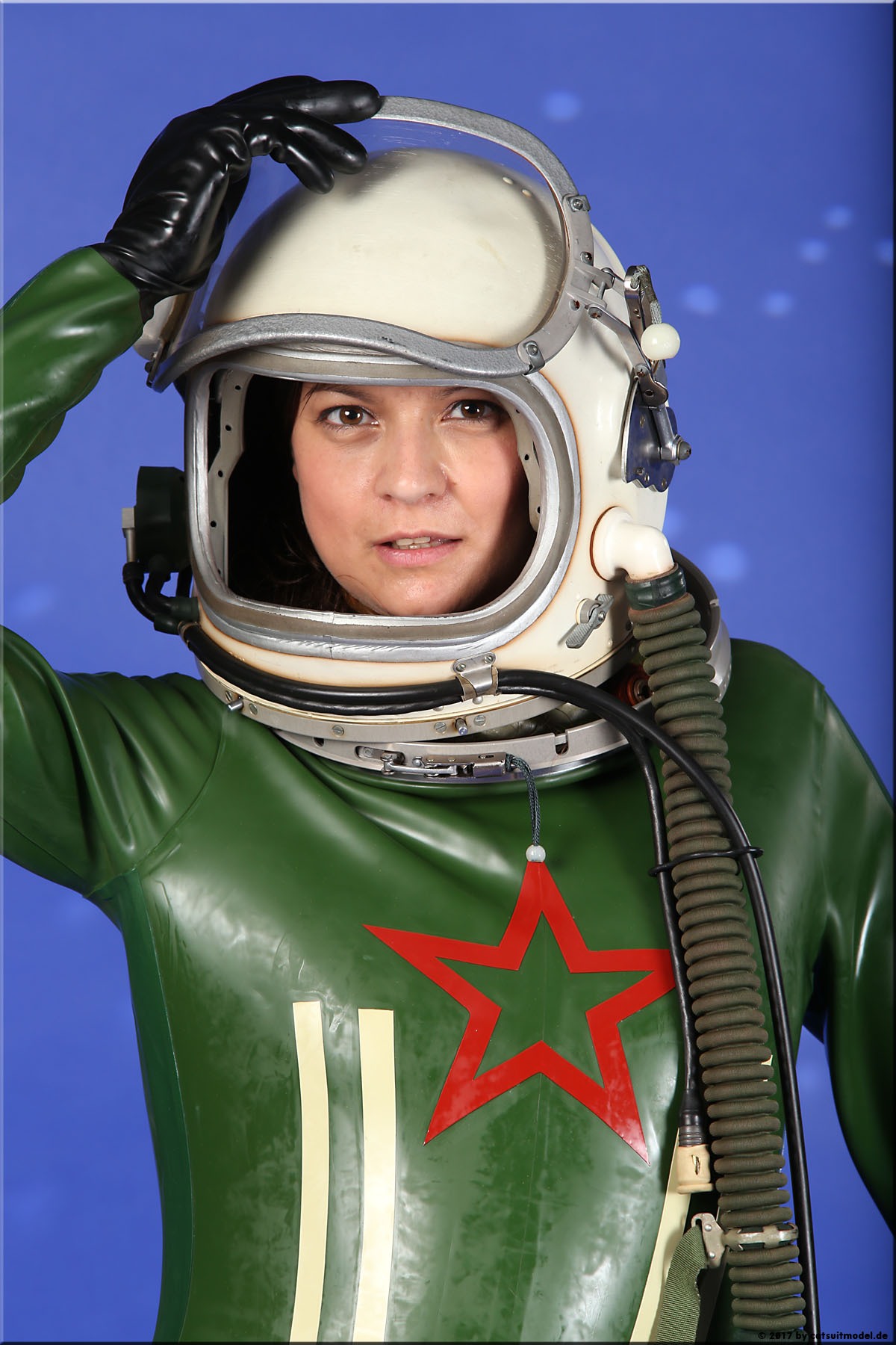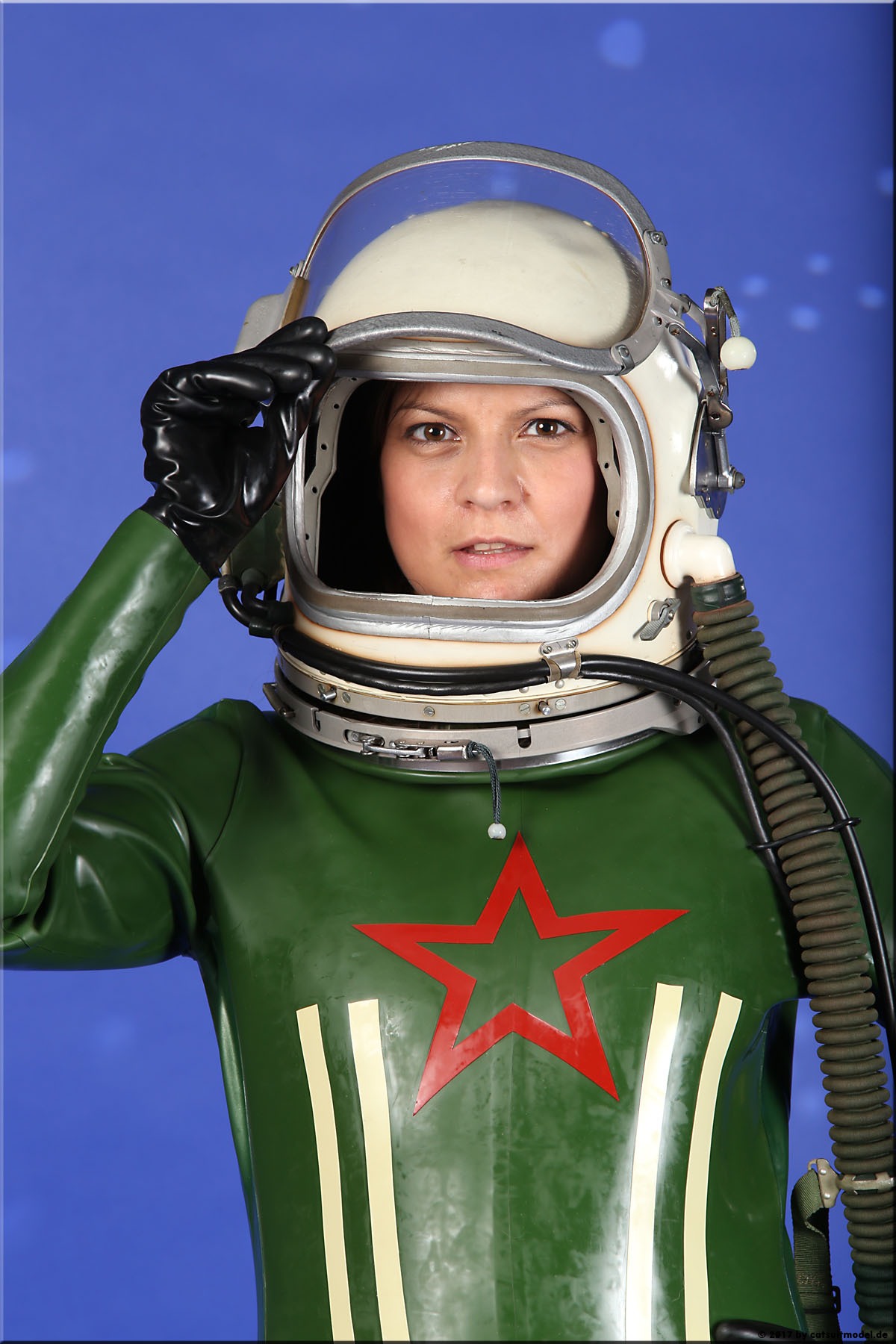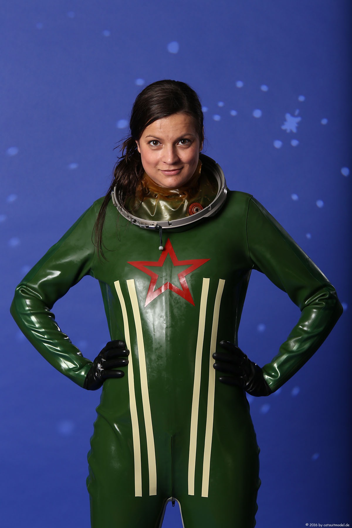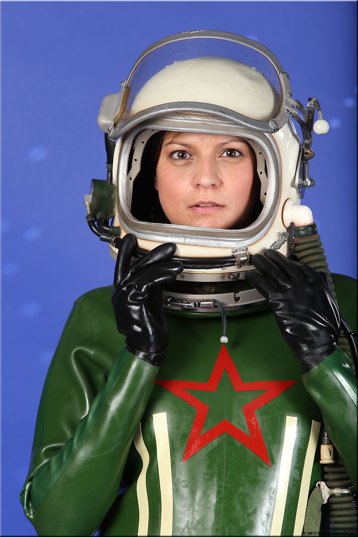 21 Feb. 2017Nun ja, die meisten Models passen nicht in den Jetfighter, weil der ganze Helm etwas surreal ist und damit schon das Objekt unglaubhaft. Aber die Serien leben einerseits von dem Posing und dem Stolz der Models, sich da reingetraut zu haben und andererseits von dem Gegensatz zwischen 10 kg schwerem Latex und den zarten Frauen. Ich find auch – jede muß mal rein und das teil muß dringend wieder outdoor in irgendwelche abgefahrenen Industrieruinen.
