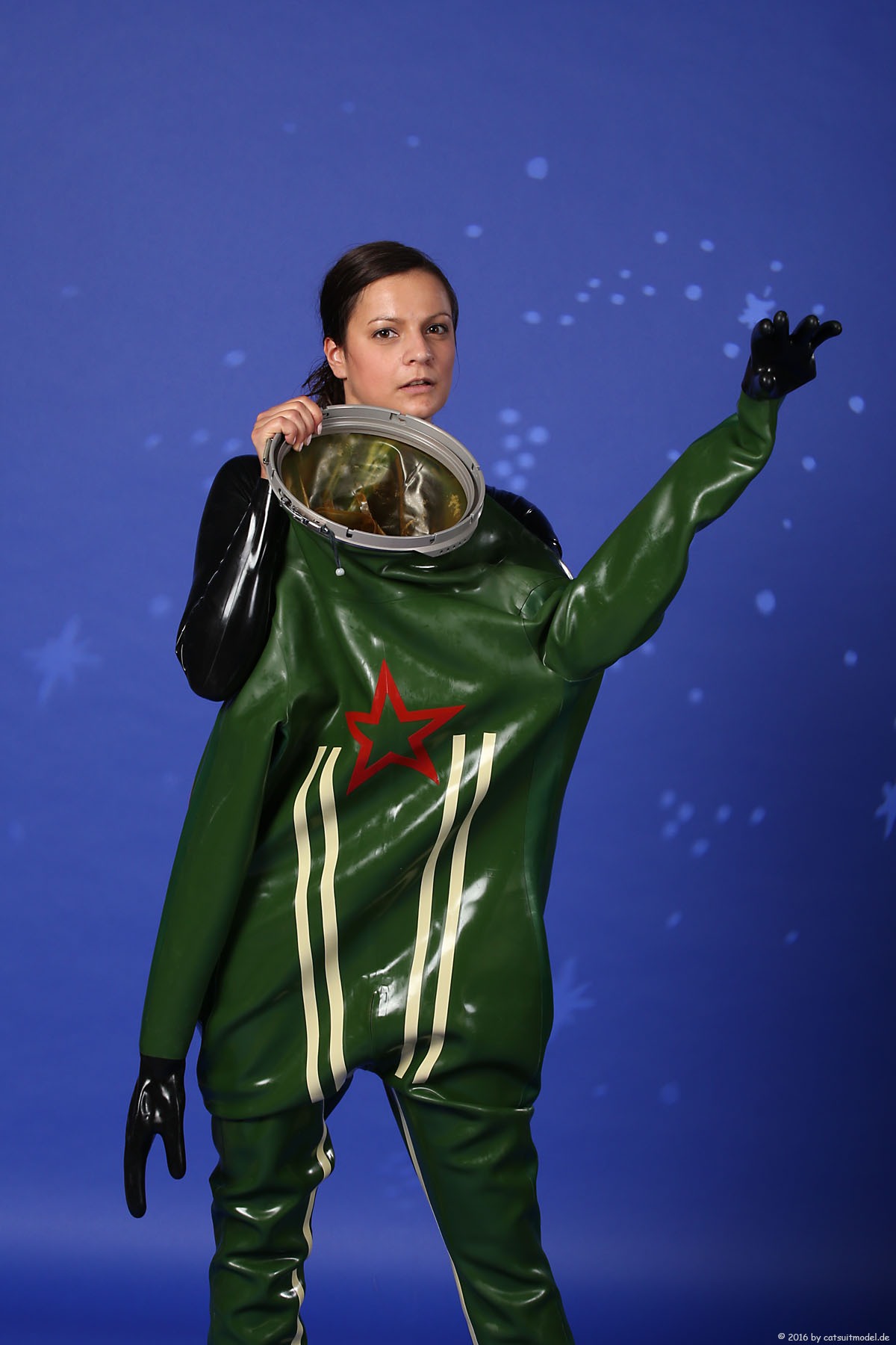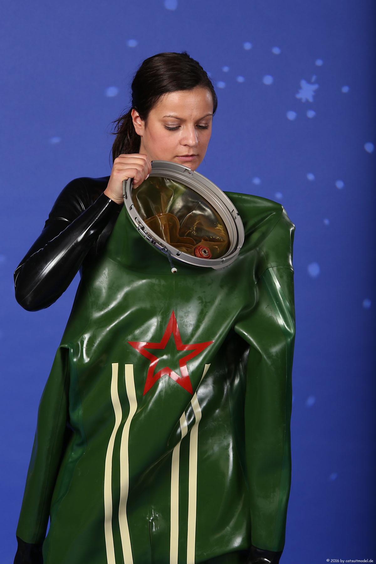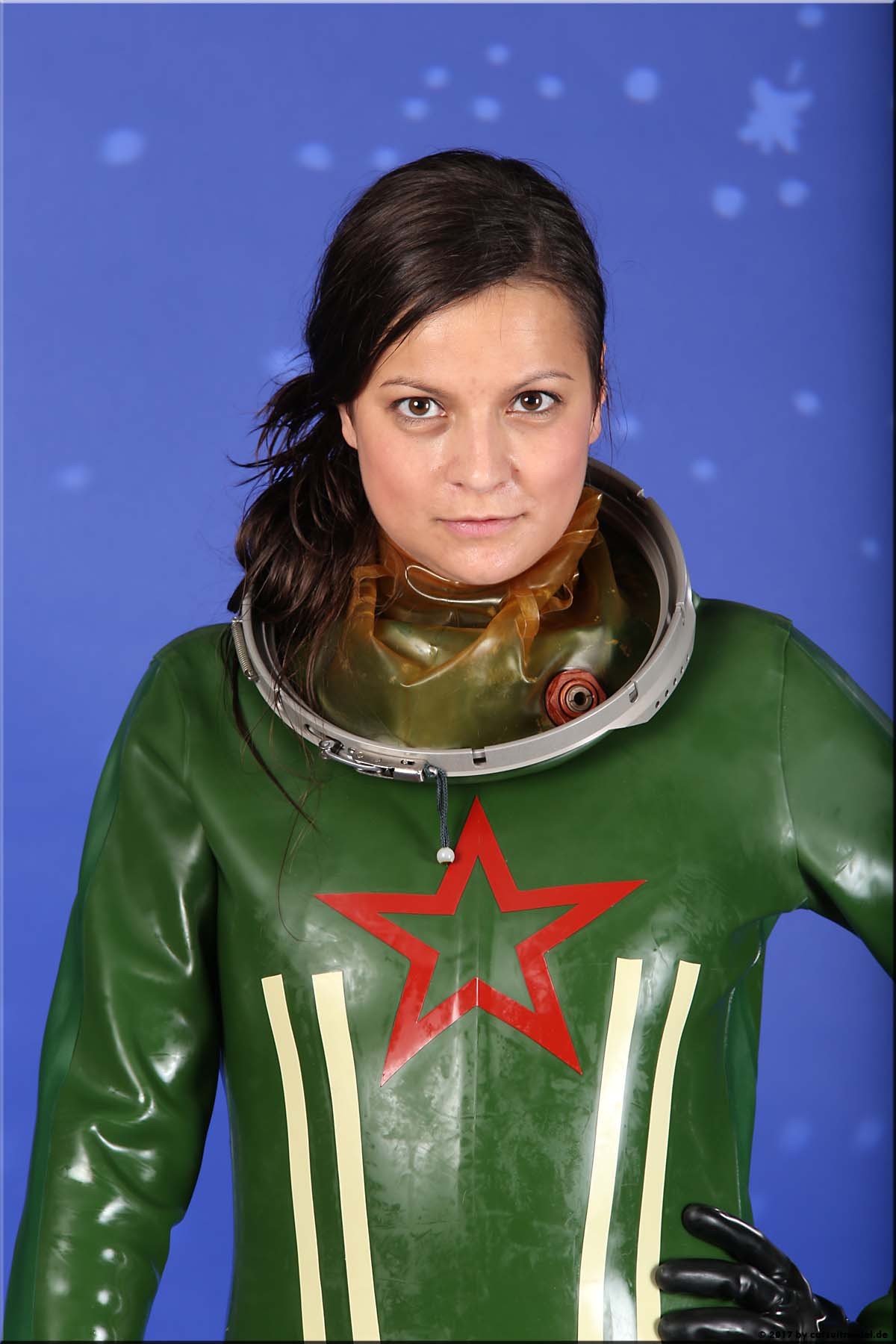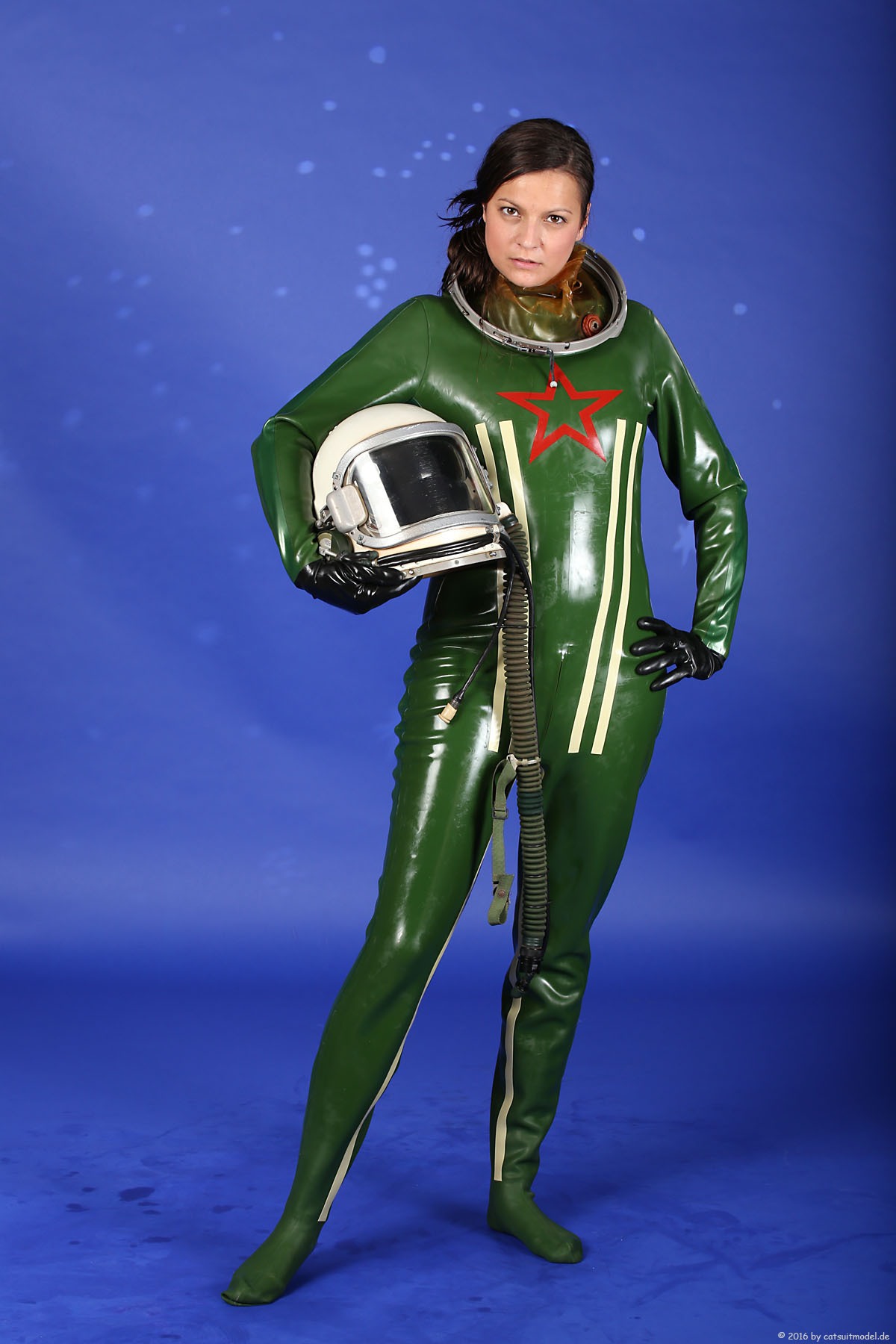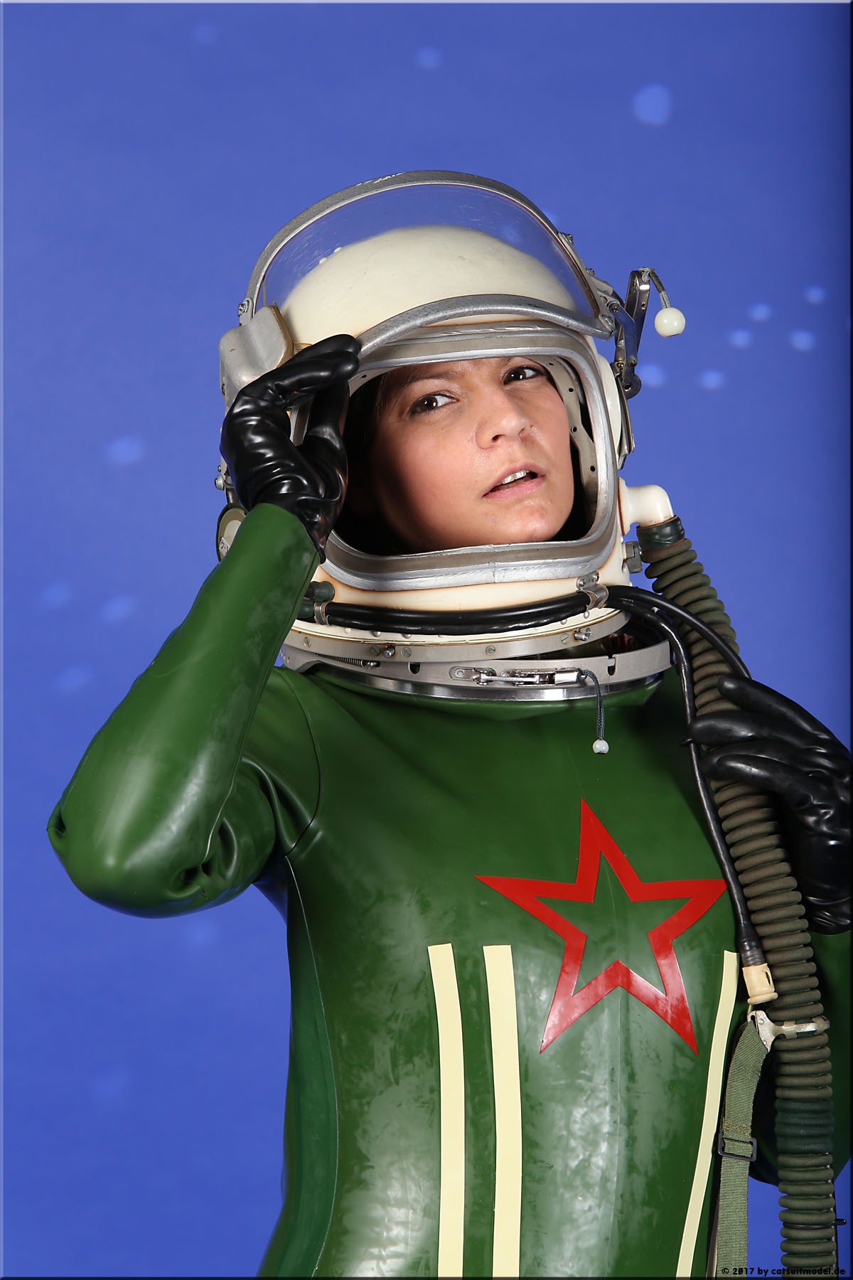 21 Feb. 2017Nun ja, die meisten Models passen nicht in den Jetfighter, weil der ganze Helm etwas surreal ist und damit schon das Objekt unglaubhaft. Aber die Serien leben einerseits von dem Posing und dem Stolz der Models, sich da reingetraut zu haben und andererseits von dem Gegensatz zwischen 10 kg schwerem Latex und den zarten Frauen. Ich find auch – jede muß mal rein und das teil muß dringend wieder outdoor in irgendwelche abgefahrenen Industrieruinen.