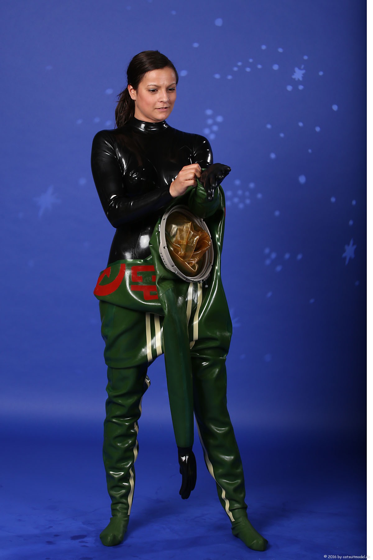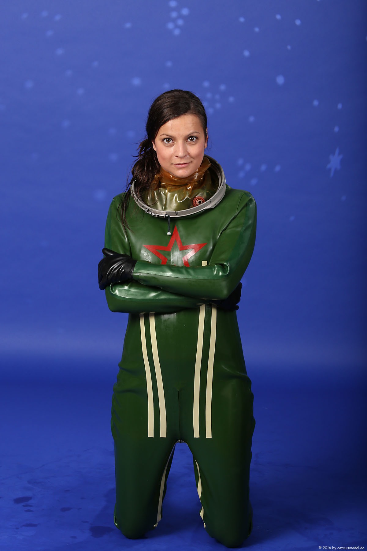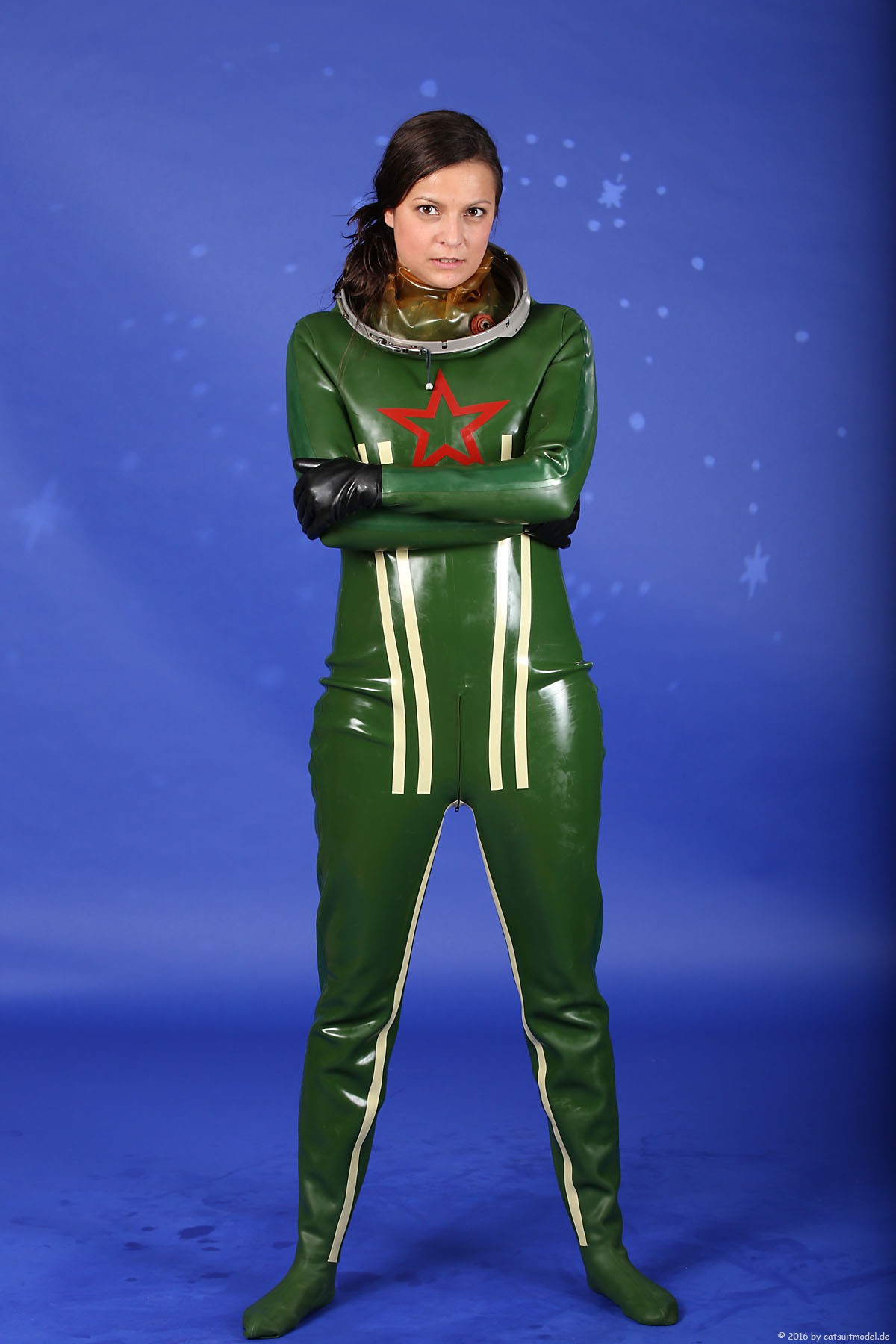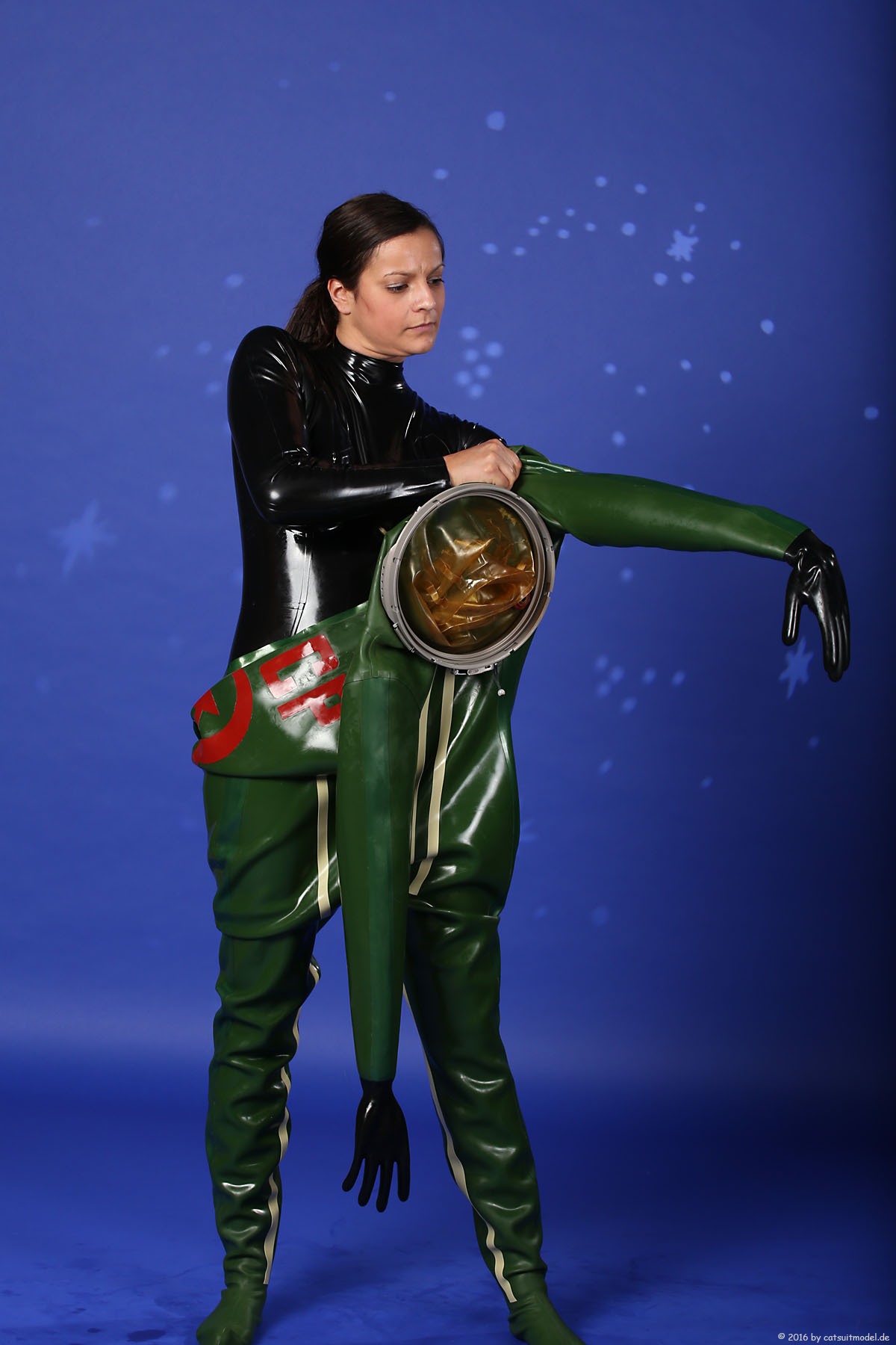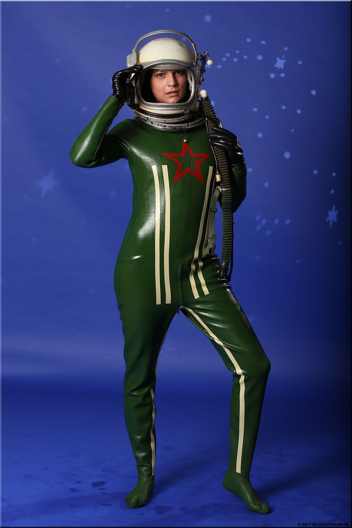 21 Feb. 2017Nun ja, die meisten Models passen nicht in den Jetfighter, weil der ganze Helm etwas surreal ist und damit schon das Objekt unglaubhaft. Aber die Serien leben einerseits von dem Posing und dem Stolz der Models, sich da reingetraut zu haben und andererseits von dem Gegensatz zwischen 10 kg schwerem Latex und den zarten Frauen. Ich find auch – jede muß mal rein und das teil muß dringend wieder outdoor in irgendwelche abgefahrenen Industrieruinen.