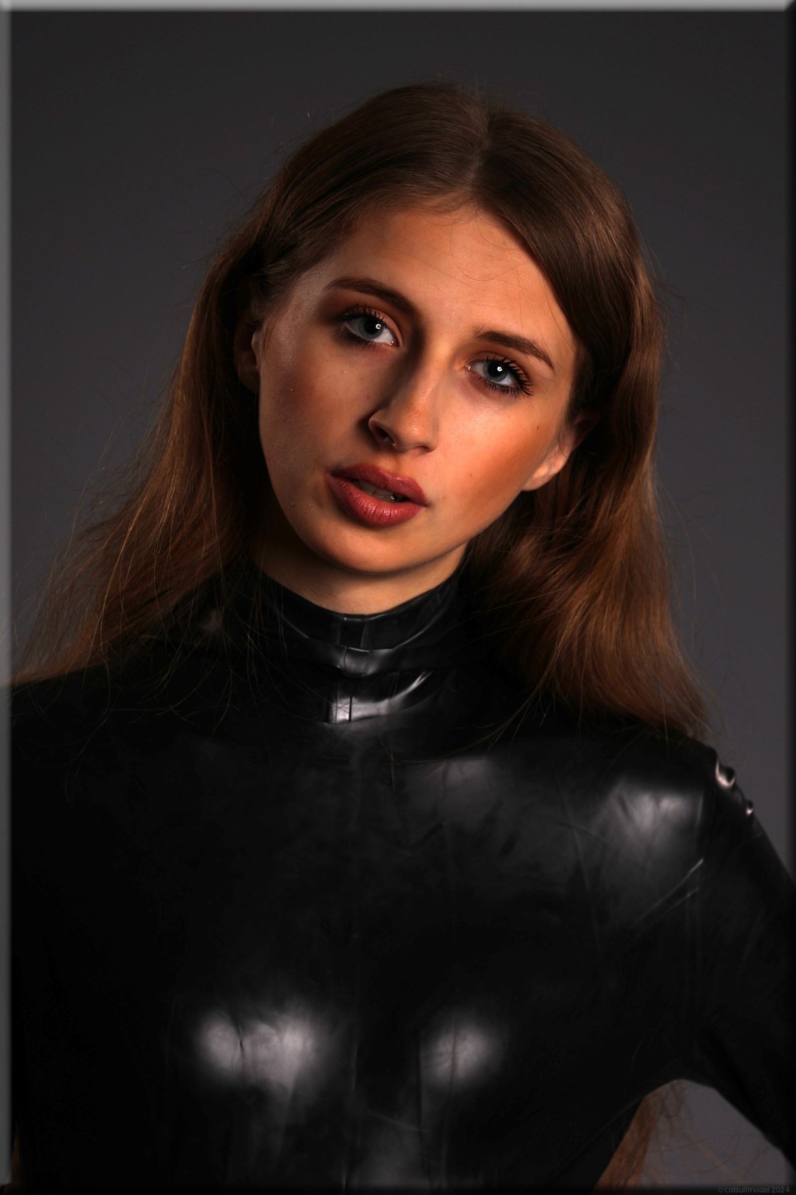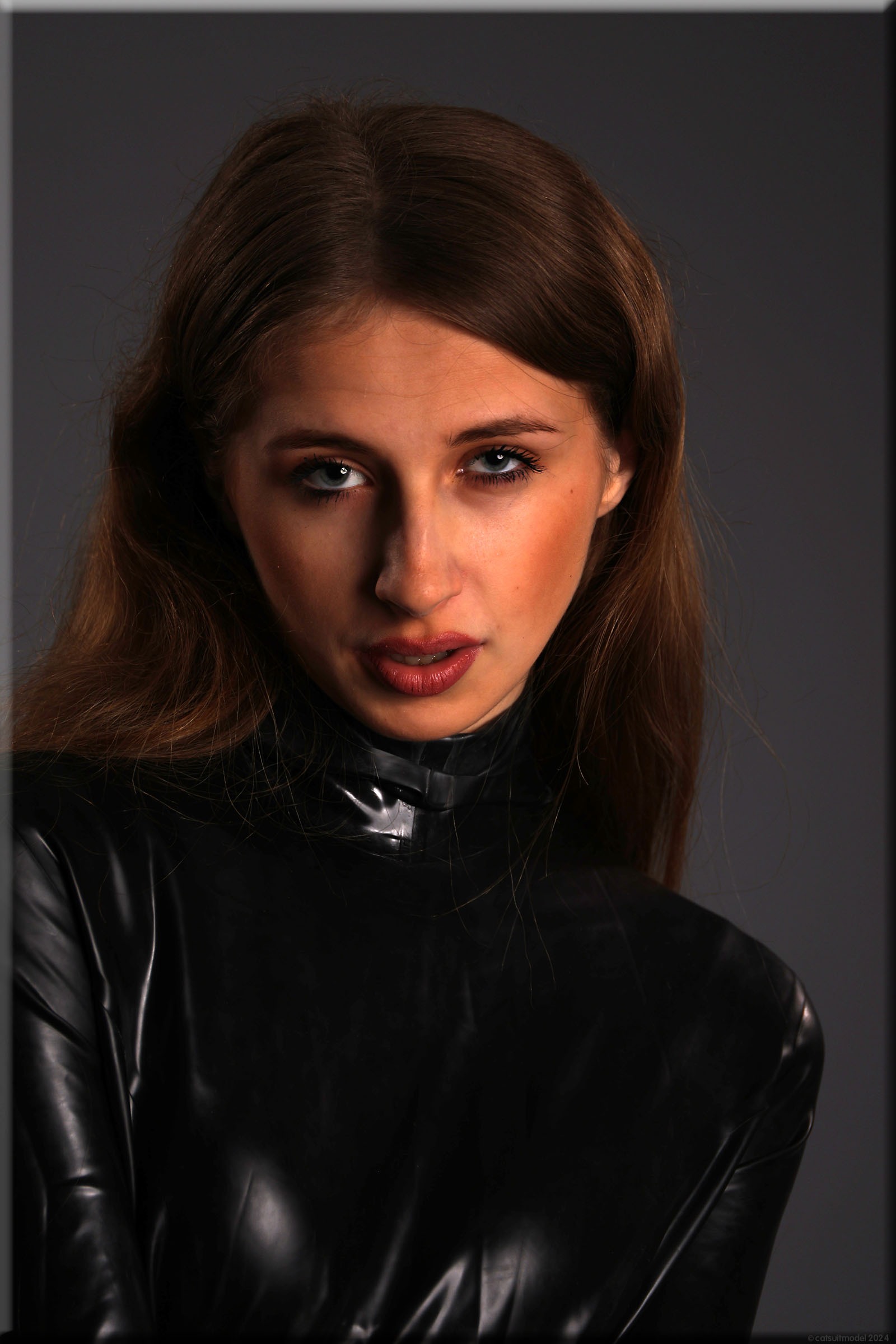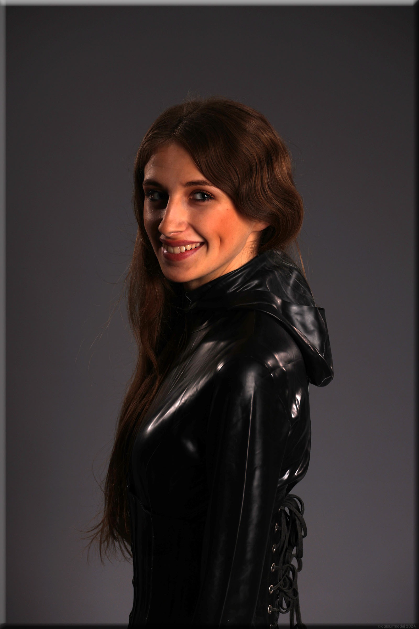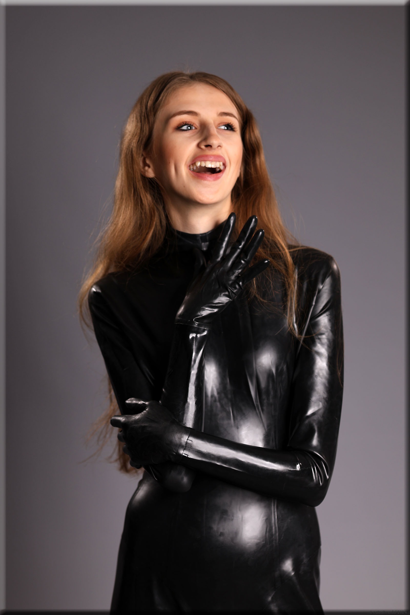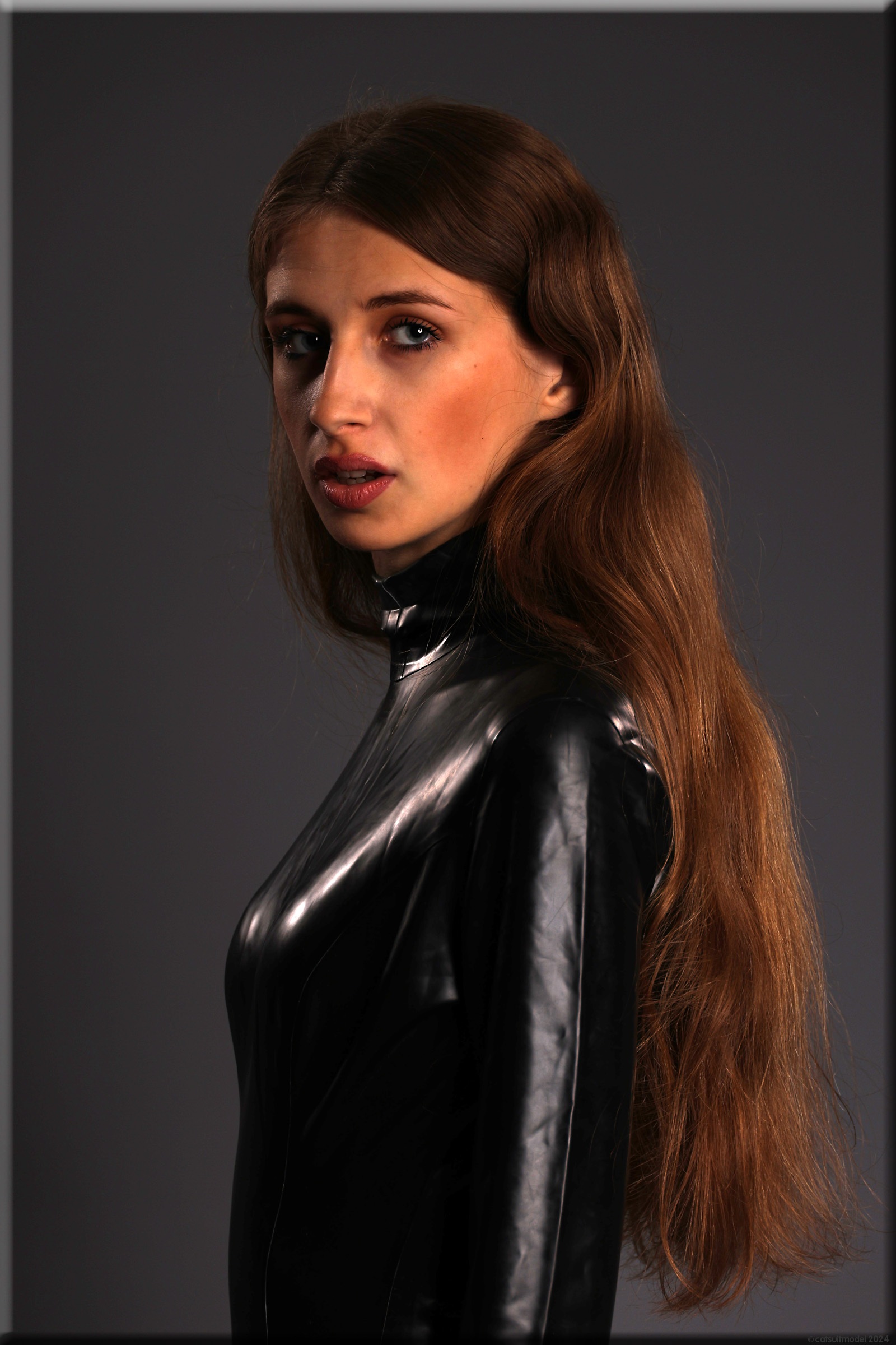 Anna im vermutlich ältesten Catsuit, den ich habe – ein Produkt von Latexcrazy. Bilder von ihm gibt es schon 2012 mit J. Leider habe ich ihn einmal verborgt und mein „Borgepartner“ hat die Füßlinge abgeschnitten. Ich hatte Sorgen, dass das Material nach 12 Jahren weich und brüchig ist, aber es ging gut.