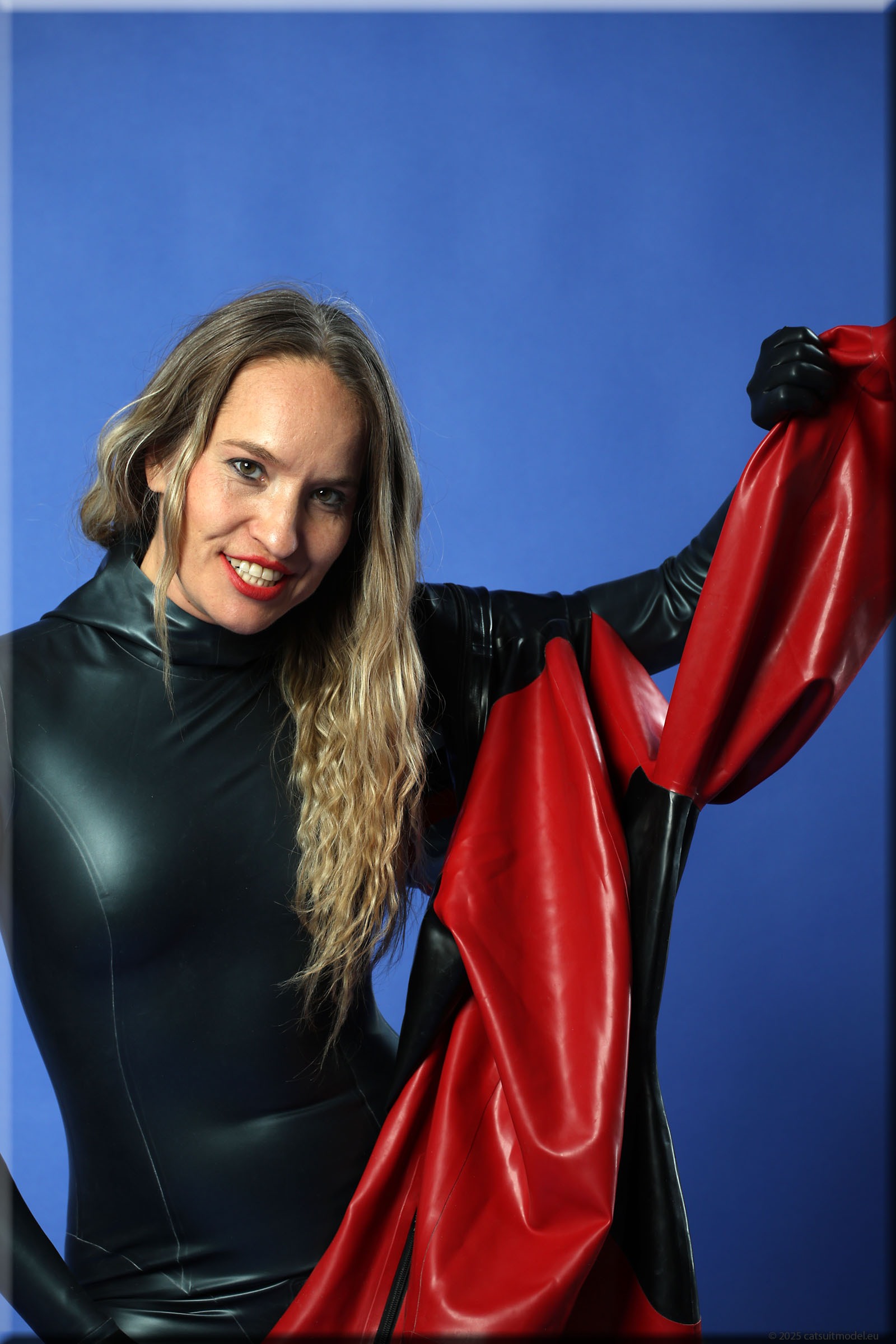 Masha ist immer mit viel Einsatz und Begeisterung bei der Sache. Hier steigt sie in den Schutzanzug „Elmi“ von Rubbermagic.