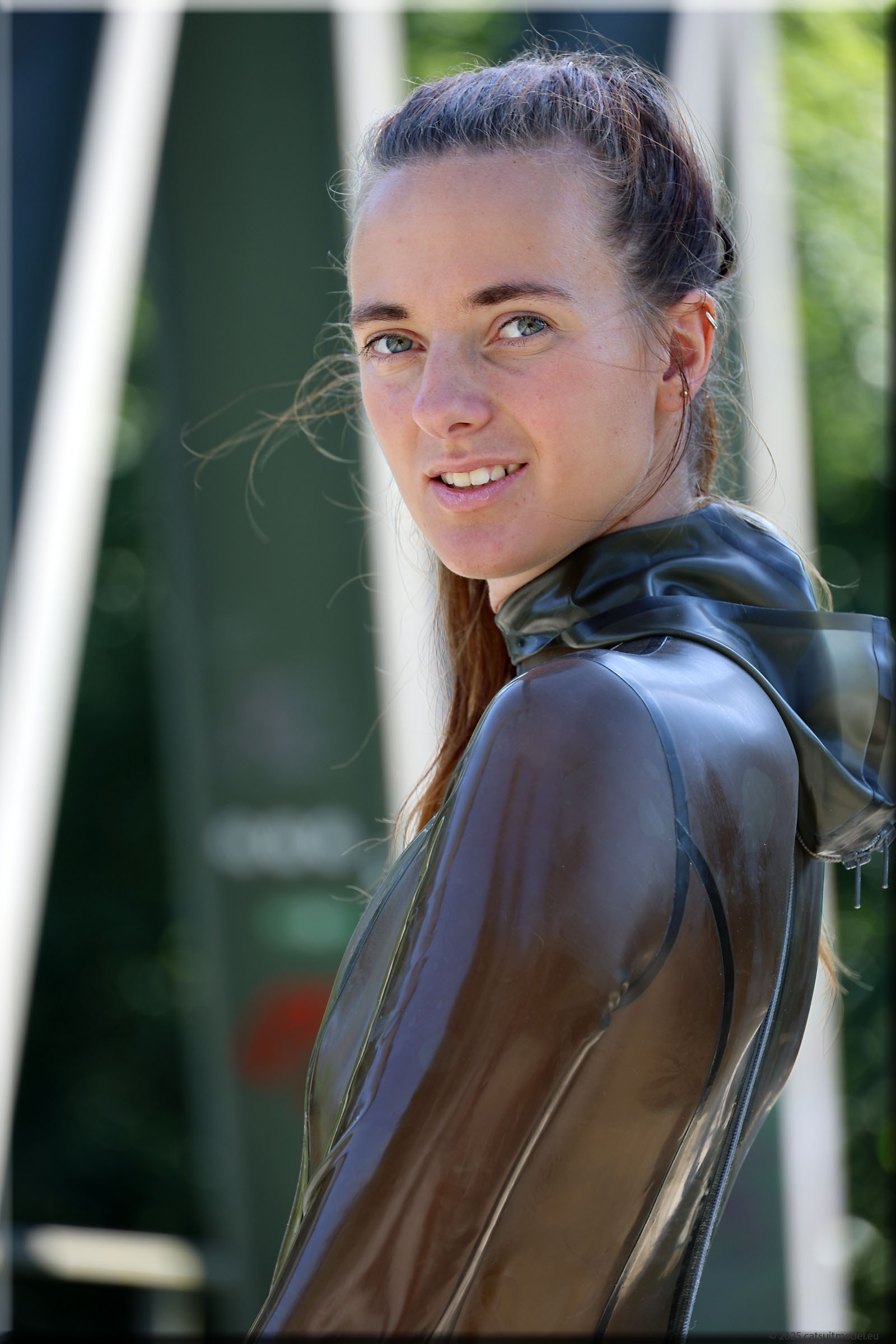 Es ist Zufall, dass Belana die gleichen Sachen passten wir wie Polina 4 Wochen vorher. Ein transparenter Catsuit mit Kopfhaube von Latexcrazy. Neu ab 231.