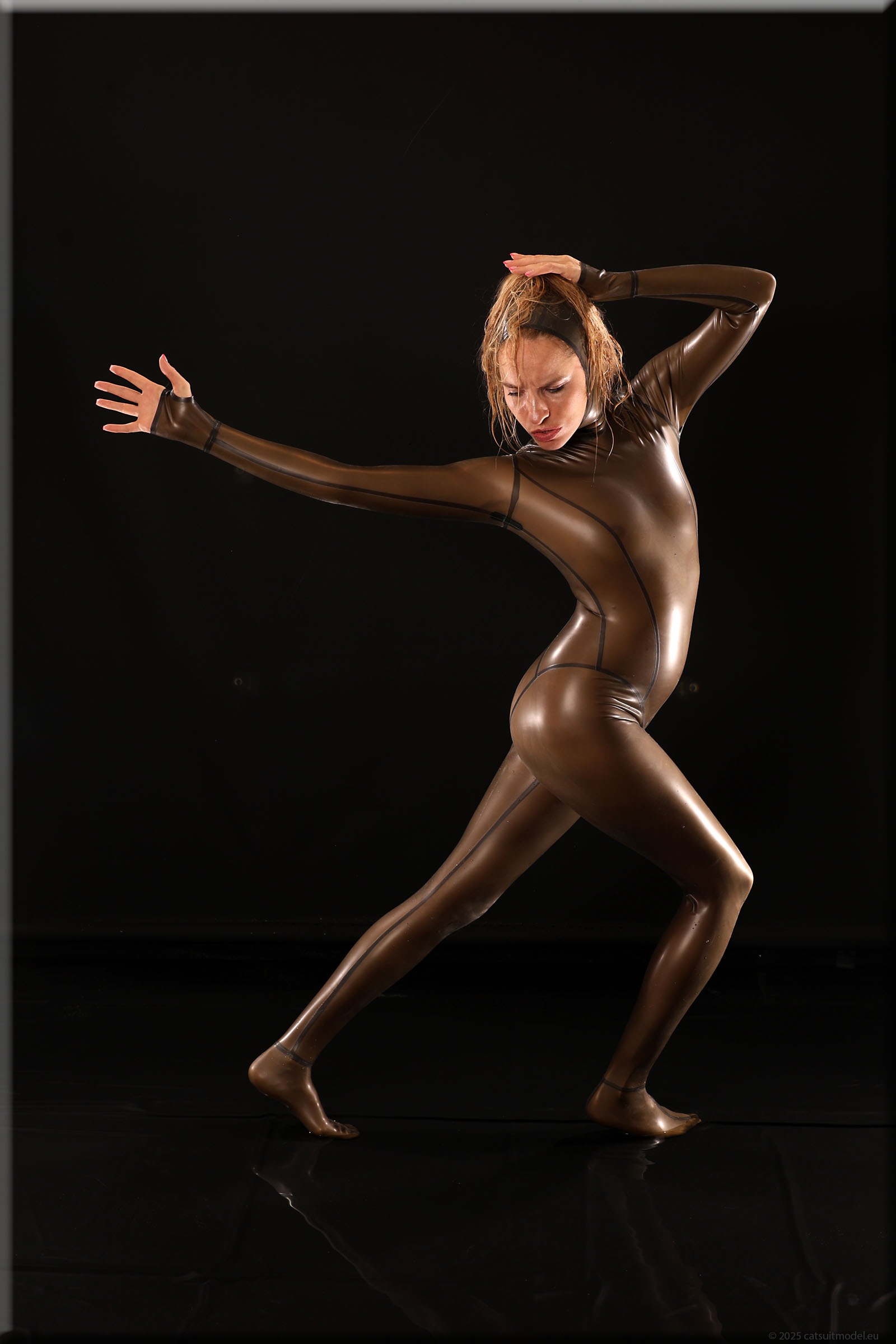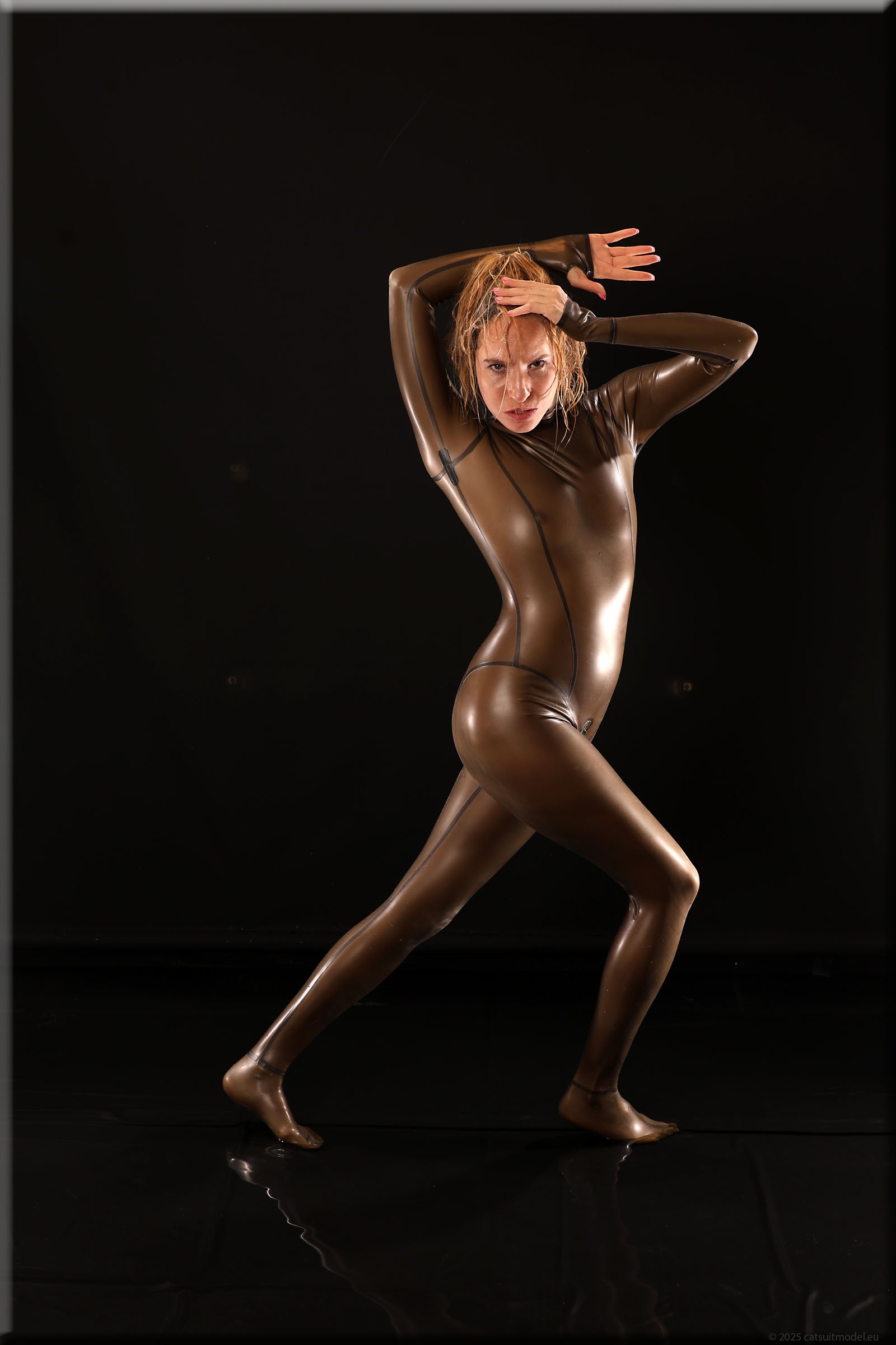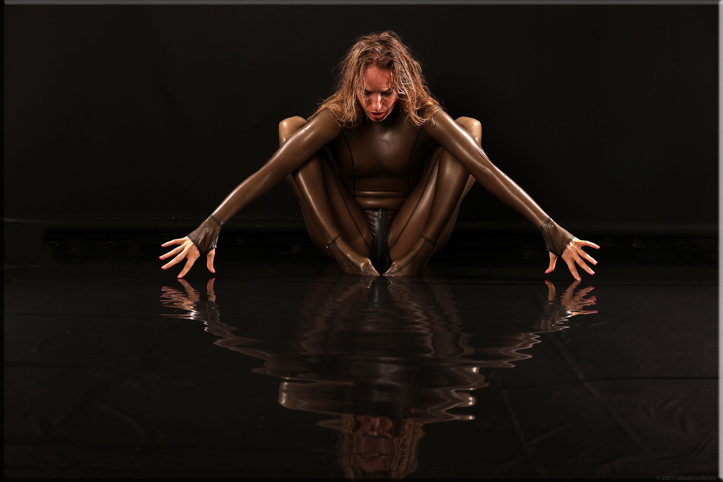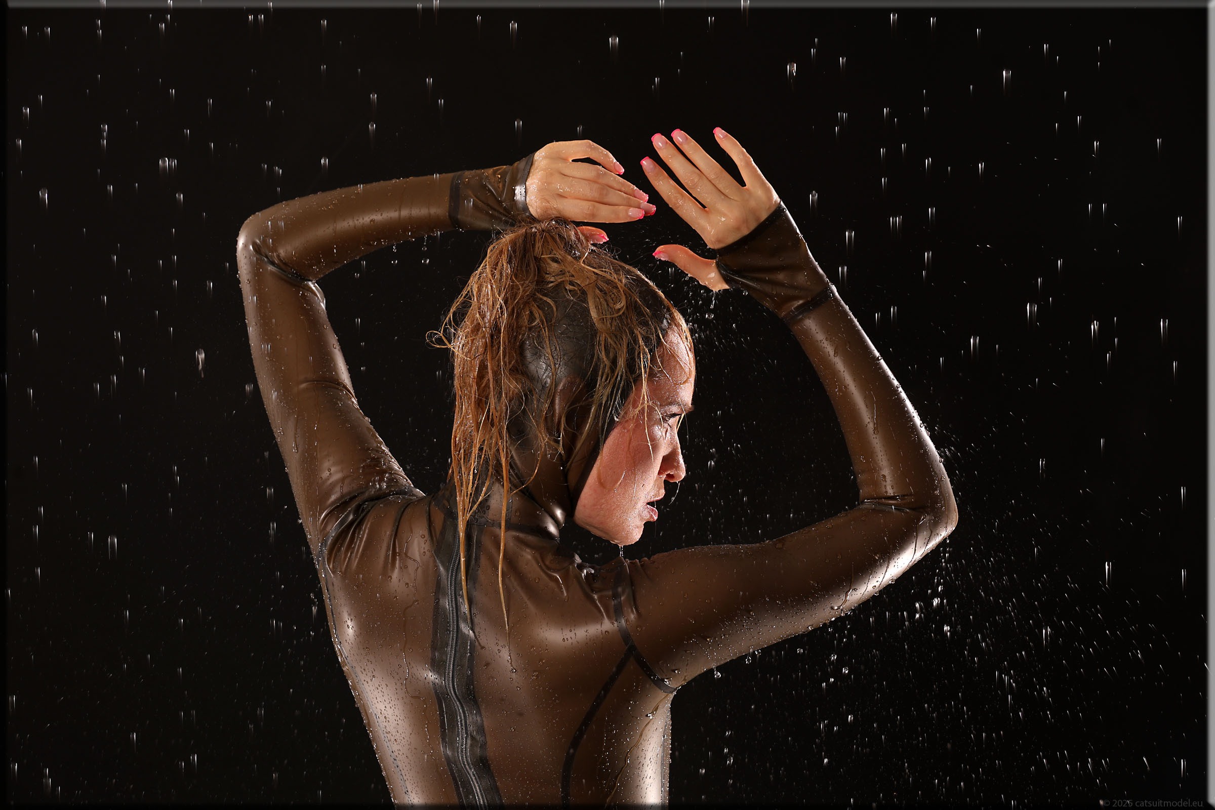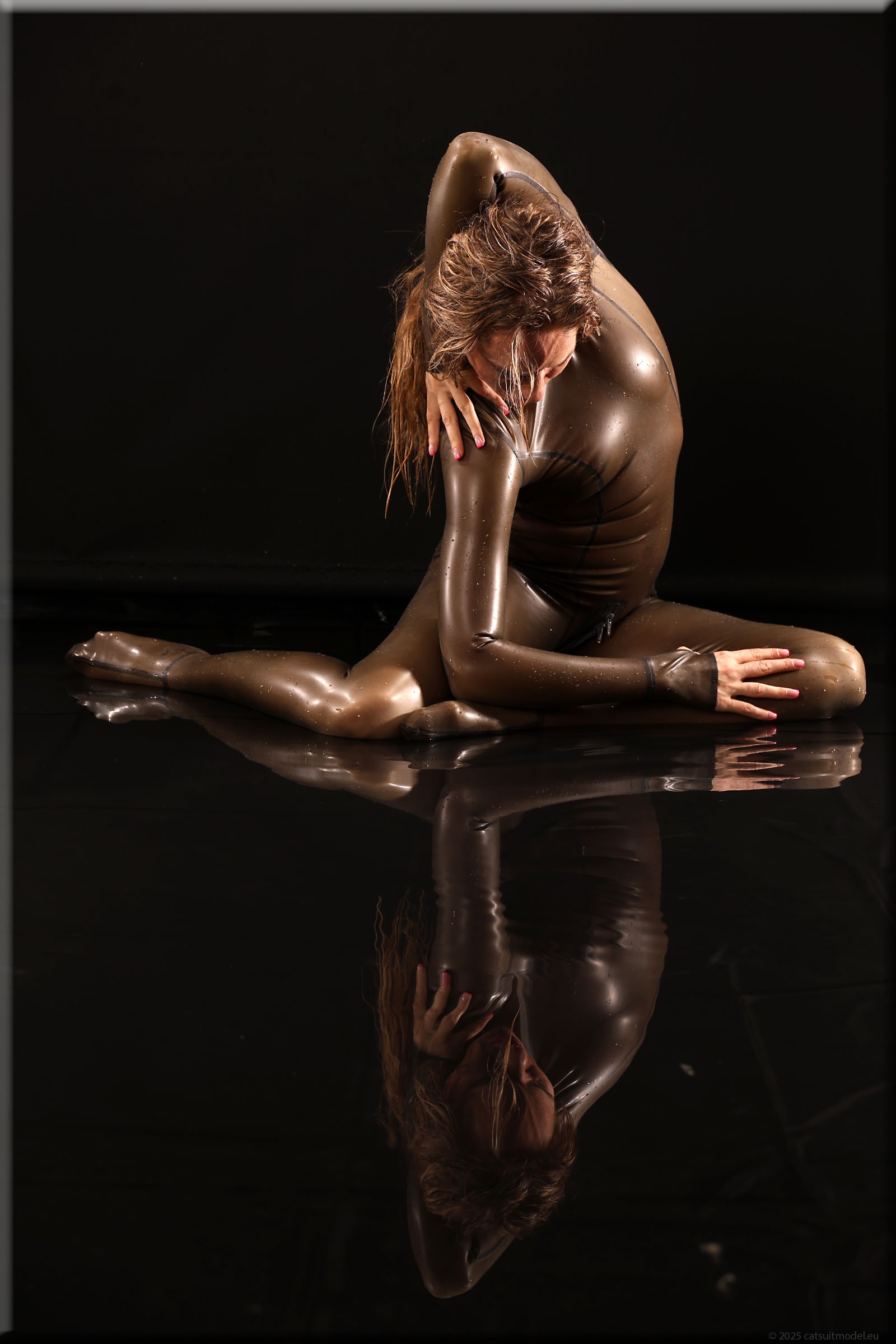 Als erstes musste Maria in den transparenten Catsuit von Latexcrazy steigen, dann hieß es „Wasser marsch!“ und sie musste in 25° warmem Wasser posieren. Es ist laut und anstrengend. Neu ab 326.