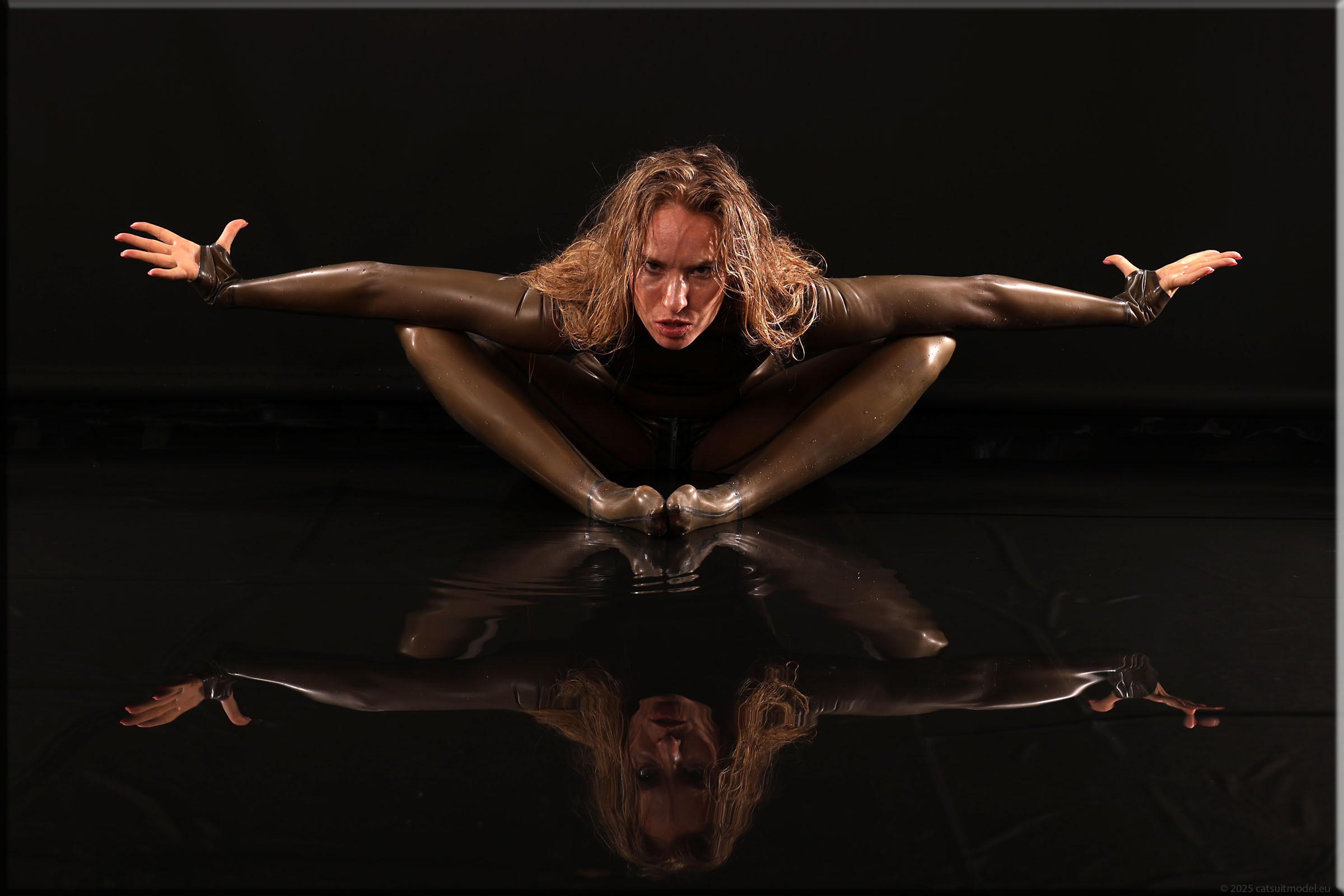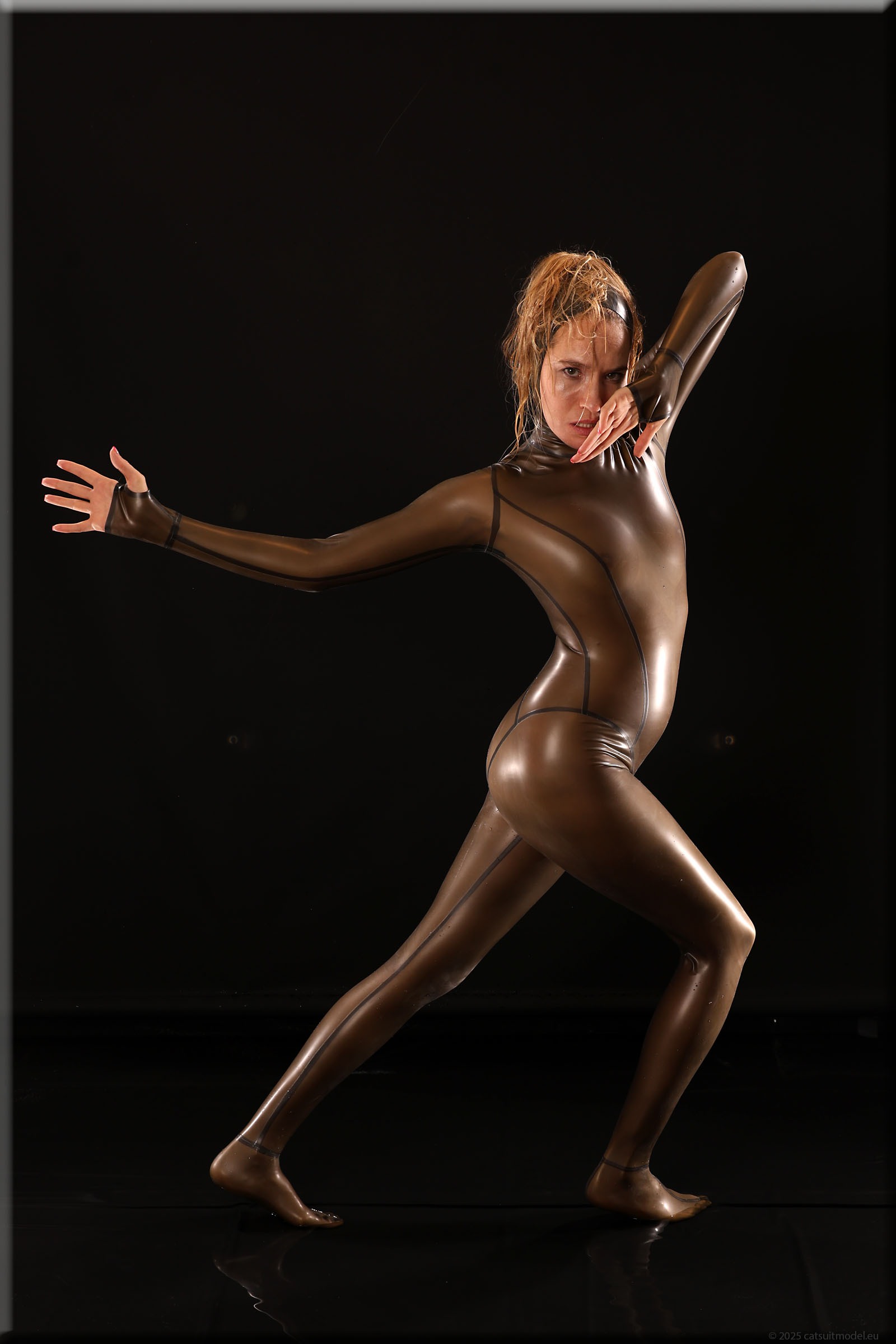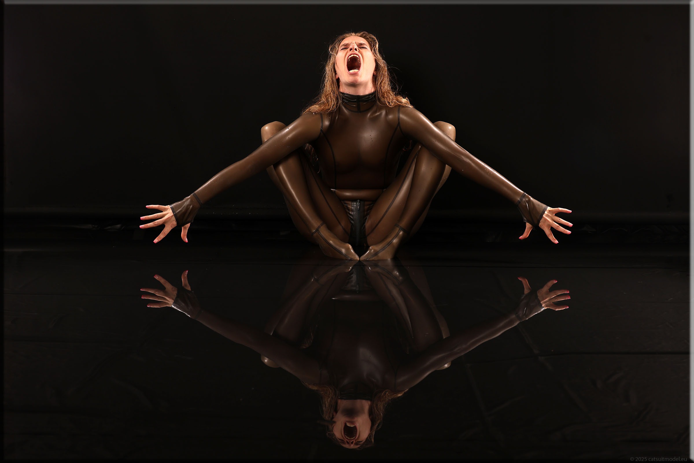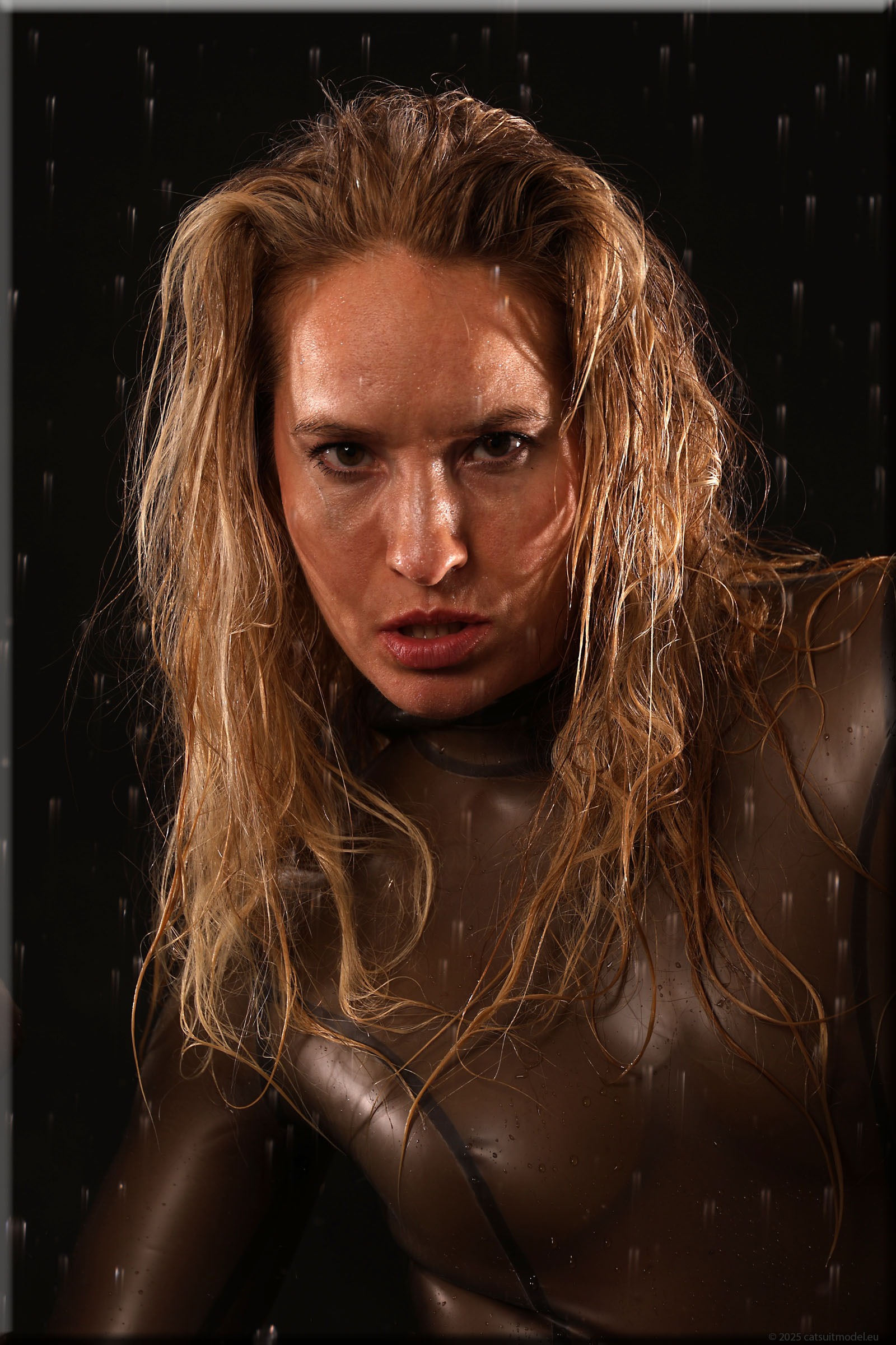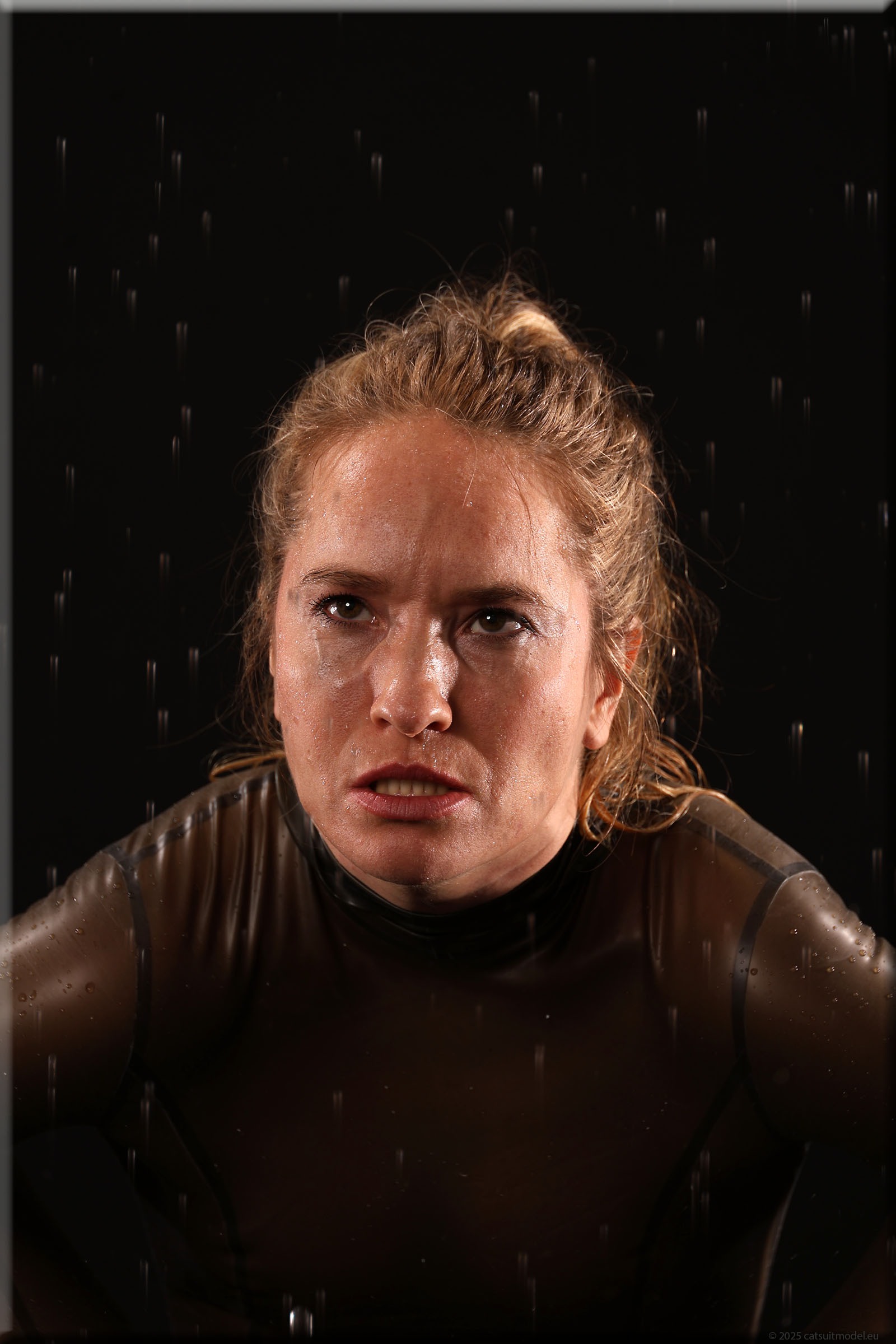 Als erstes musste Maria in den transparenten Catsuit von Latexcrazy steigen, dann hieß es „Wasser marsch!“ und sie musste in 25° warmem Wasser posieren. Es ist laut und anstrengend. Neu ab 326.